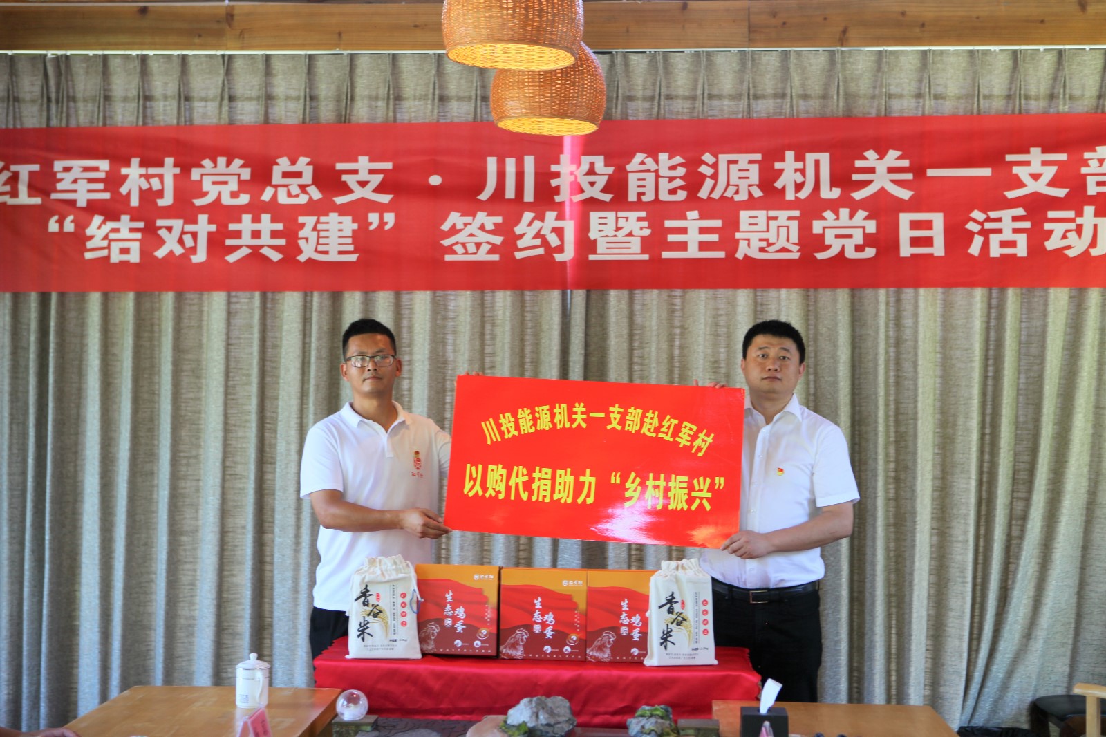 活動(dòng)現(xiàn)場(chǎng),雙方簽訂《企地黨支部結(jié)對(duì)共建協(xié)議書(shū)》,共同聆聽(tīng)紅色微黨課,重溫入黨誓詞,重溫紅色記憶、汲取奮進(jìn)力量。川投能源機(jī)關(guān)第一黨支部向紅軍村黨總支贈(zèng)送了精選黨建類書(shū)籍并開(kāi)展“以購(gòu)代捐”活動(dòng),以消費(fèi)幫扶助力鄉(xiāng)村振興。