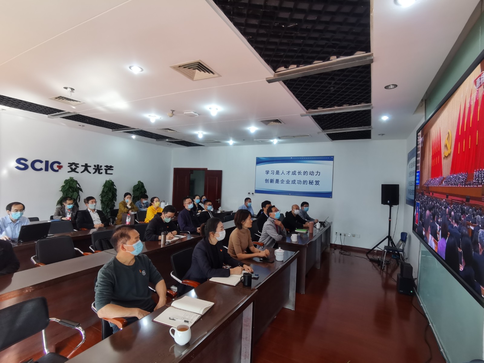 川投能源班子成員與本部各部門負(fù)責(zé)人、黨員代表一同收看了黨的二十大開幕會(huì)盛況。