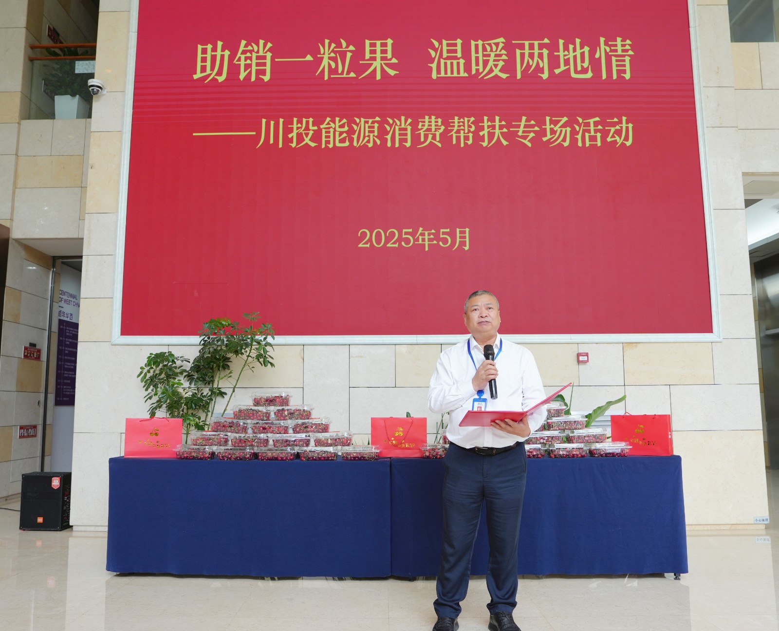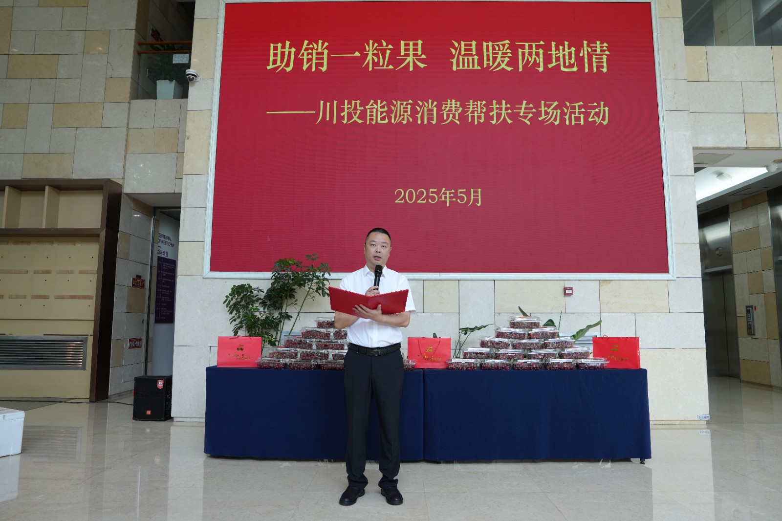 為鞏固拓展托底性幫扶工作成效,在助力鄉(xiāng)村振興中彰顯省屬?lài)?guó)企的責(zé)任擔(dān)當(dāng),5月7日,川投能源與結(jié)對(duì)幫扶的儀隴縣馬鞍鎮(zhèn)、福臨鄉(xiāng)在成都舉辦“助銷(xiāo)一粒果 溫暖兩地情”消費(fèi)幫扶專(zhuān)場(chǎng)活動(dòng)。川投能源黨委書(shū)記、副董事長(zhǎng)、總經(jīng)理?xiàng)詈槌鱿顒?dòng)并致辭,儀隴縣副縣長(zhǎng)林雪松致感謝辭。