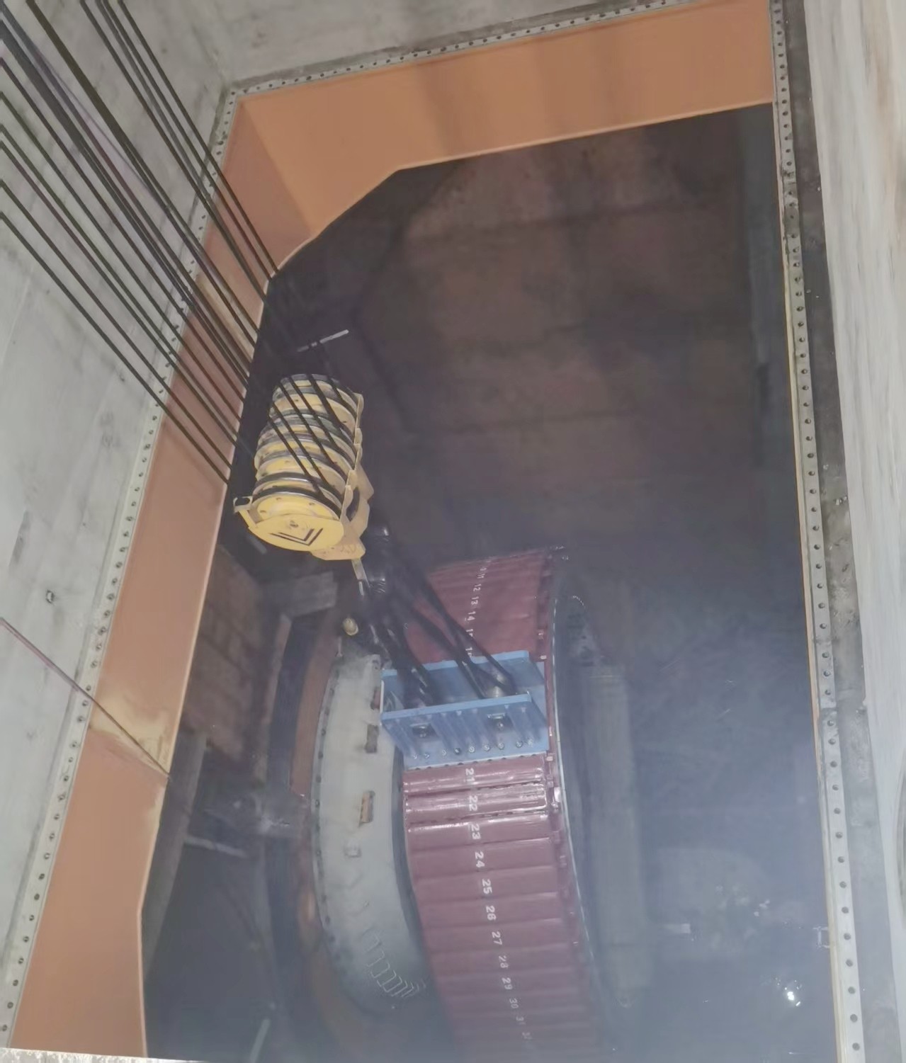 此次吊裝的6號機組轉(zhuǎn)子重量達230.5噸,直徑8.4米,是名副其實的“鋼鐵巨環(huán)”,其精準(zhǔn)就位對施工技術(shù)與安全保障提出極高要求。為確保吊裝萬無一失,所屬攀水電公司與參建各方做足了準(zhǔn)備,聯(lián)合開展多輪檢查,全面排查橋機、吊具等關(guān)鍵設(shè)備,同步組織技術(shù)交底和模擬演練,把安全措施落實到每個環(huán)節(jié)。吊裝過程中,這臺龐然大物在橋機手的精準(zhǔn)操控下平穩(wěn)起吊、緩緩移動,最終以毫米級精度穩(wěn)穩(wěn)落入機坑,與發(fā)電機大軸精準(zhǔn)對接。全程監(jiān)測數(shù)據(jù)顯示所有參數(shù)均符合設(shè)計標(biāo)準(zhǔn),本次吊裝任務(wù)圓滿完成。