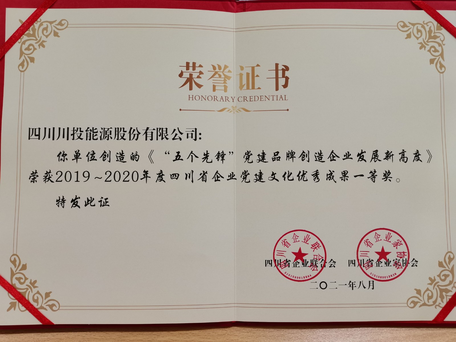 9月10日,四川省第十三屆企業(yè)文化年會在成都舉行。川投能源公司申報參評的《“五個先鋒”黨建品牌創(chuàng)造企業(yè)發(fā)展新高度》獲得2019-2020年度四川省企業(yè)黨建文化優(yōu)秀成果一等獎,成為5家上榜“一等獎”的企業(yè)中唯一一家省屬國有上市企業(yè)。