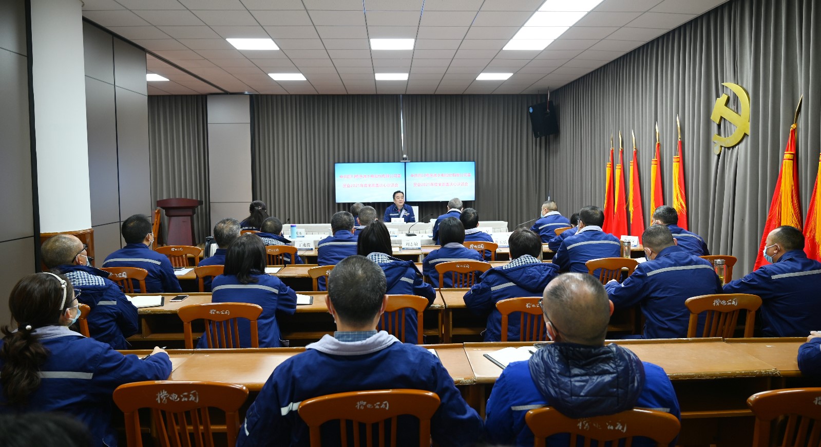 按照上級黨委和公司黨委的工作布置,11月17日,槽漁灘公司召開談心談話會,公司黨委書記、董事長楊濤與領導班子成員、各部門負責人、支部書記以及黨員代表共32人開展了集體談心談話。