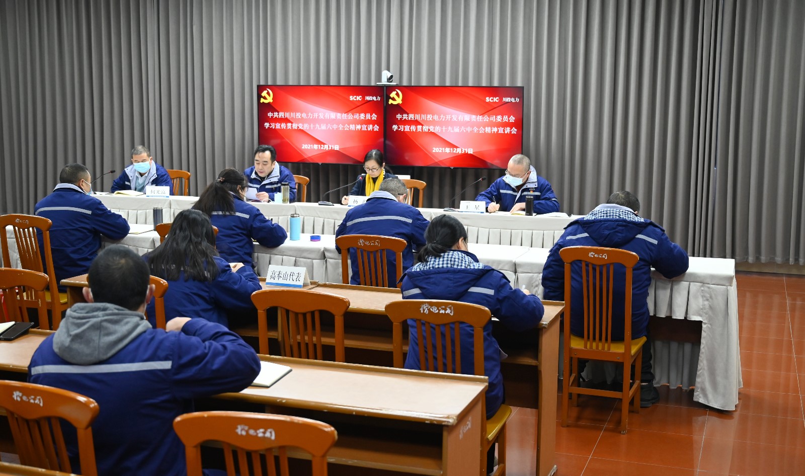 2021年12月31日,川投電力公司黨委在洪雅槽漁灘公司召開(kāi)“學(xué)習(xí)宣傳貫徹黨的十九屆六中全會(huì)精神宣講會(huì)”。川投電力黨委書(shū)記、董事長(zhǎng)楊濤在會(huì)上就十九屆六中全會(huì)精神作了專題宣講;宣講會(huì)由川投電力黨委副書(shū)記楊鑫主持。