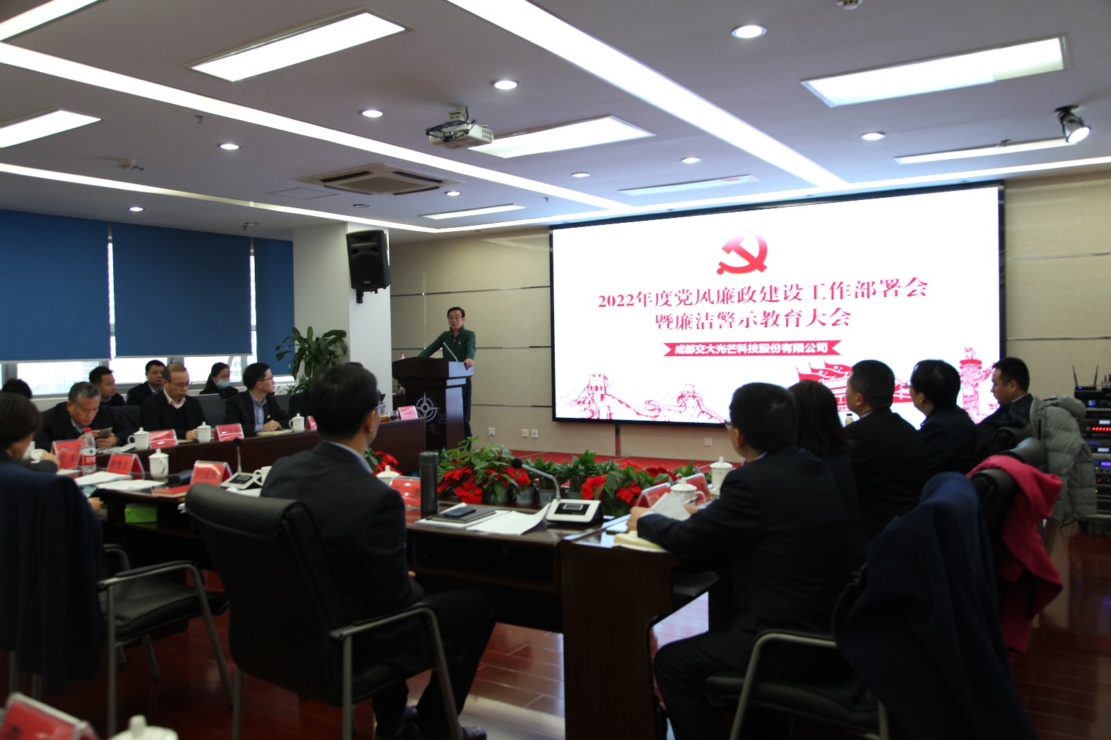 為進一步貫徹落實習近平總書記關于全面從嚴治黨重要論述,推動黨要管黨、全面從嚴治黨的政治責任層層壓緊壓實,1月25日,交大光芒召開2022年度黨風廉政建設工作部署會暨廉潔警示教育大會。交大光芒黨總支書記、總經(jīng)理劉成輝主持會議并作警示談話。