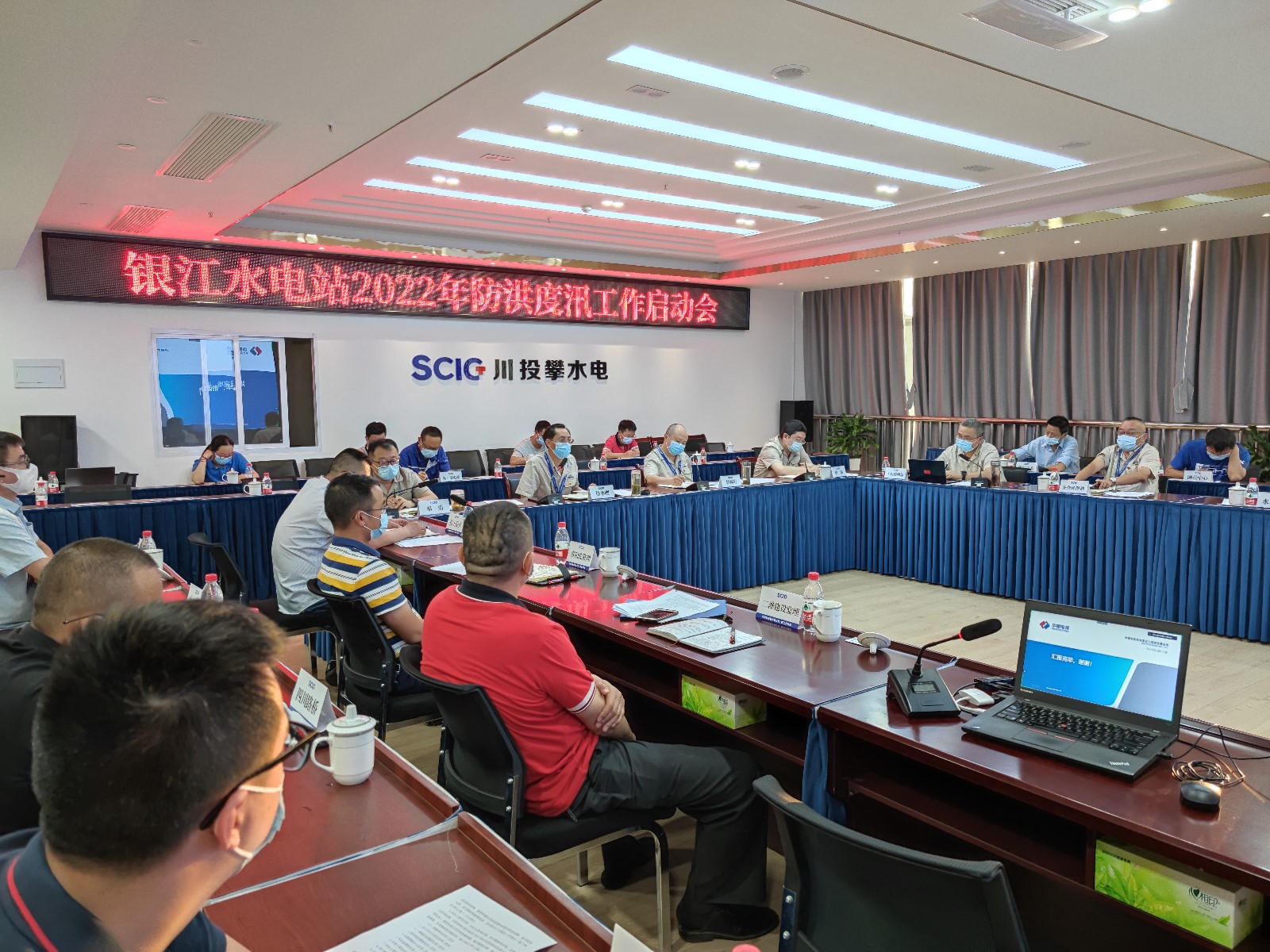 下午,公司組織召開了2022年防洪度汛工作啟動會,會議由公司黨總支委員、總經(jīng)理、防汛領(lǐng)導(dǎo)小組組長吳巍嶼主持。會上,公司黨總支委員、董事會秘書、工會主席、防汛領(lǐng)導(dǎo)小組副組長鄧勇,公司總經(jīng)理助理、防汛領(lǐng)導(dǎo)小組成員唐伽分別宣貫了近期四川省防洪度汛、防汛減災(zāi)相關(guān)文件精神;公司工程管理部經(jīng)理、防汛領(lǐng)導(dǎo)小組成員嚴(yán)瑞平匯報了公司2022年防洪度汛準(zhǔn)備工作情況,并對防洪度汛工作作了具體安排;各參建單位逐一匯報了防洪度汛組織機(jī)構(gòu)、值班安排、度汛形象面貌、地災(zāi)隱患治理、防洪度汛應(yīng)急演練、防汛物資落實等情況;會議認(rèn)真查找度汛準(zhǔn)備工作中的不足,制定相應(yīng)處置措施,壓實防洪度汛責(zé)任,安排部署防汛、防地災(zāi)重點工作。