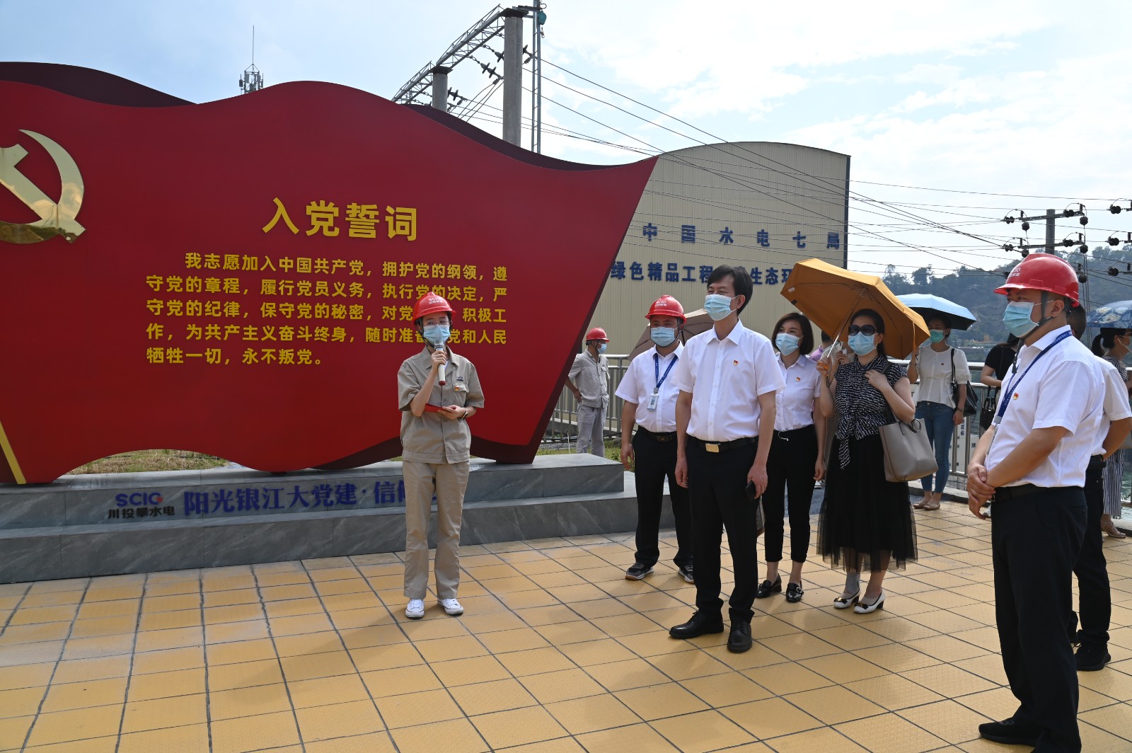 田巨龍一行首先參觀了銀江水電站施工現場和大黨建宣傳陣地。在施工現場,吳巍嶼介紹了銀江水電站的基本情況,田巨龍一行對銀江水電站成功實現提前一年大江截流表示充分欽佩,并表示十分期盼銀江水電站蓄水后高峽平湖、水城相融的壯觀景象。在大黨建宣傳陣地,講解員王思琪向來賓介紹了川投能源黨委“五個先鋒”黨建品牌總體要求和攀水電公司“七色陽光大黨建”的實施情況。田巨龍一行表示,公司“七色陽光大黨建”品牌特色鮮明,很好地結合攀枝花市區(qū)域特色和銀江水電站工程建設任務,希望醫(yī)院黨委能進一步加強與攀水電黨總支的交流學習。