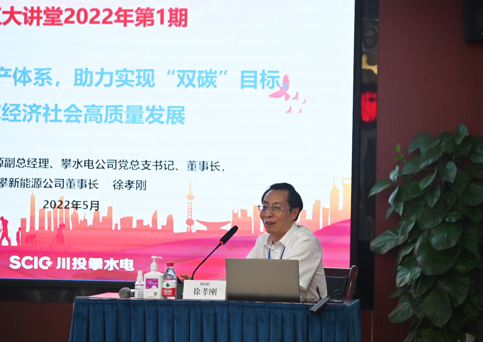 活動中,醫(yī)院急診科蘇曉勇主任、腫瘤科廖玲醫(yī)師分別以《熱愛生命,關注腫瘤》和《心肺復蘇術》為主題,為攀水電公司和參建單位員工代表帶來了的健康知識講座,并進行了身臨其境的互動教學。徐孝剛講授了《構建清潔能源生產體系,助力實現“雙碳”目標,支撐經濟社會高質量發(fā)展》為題的主題黨課,從“碳達峰與碳中和的背景”、“雙碳目標的形勢要求”、“清潔能源體系在雙碳目標中的重要地位”、“構建清潔能源生產體系的實施路徑及公司相關工作開展情況”四個方面,向大家介紹了目前國家的能源發(fā)展戰(zhàn)略、發(fā)展要求和發(fā)展形勢,并向大家介紹了攀水電公司和攀新能源公司相關工作的推進情況。徐孝剛講到,公司作為能源行業(yè)的國有企業(yè),在構建清潔能源生產體系的過程中責任重大、使命光榮,并號召公司黨員群眾要不忘初心、牢記使命,為實現雙碳目標積極做出更大的貢獻。