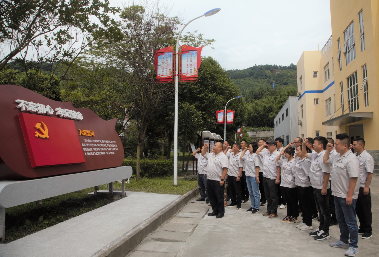 “我志愿加入中國共產(chǎn)黨,擁護(hù)黨的綱領(lǐng)……”在公司黨建文化陣地入黨誓詞區(qū),為重溫黨的光輝歷程,進(jìn)一步增強(qiáng)黨員的榮譽(yù)感、責(zé)任感和使命感,在陳忠的領(lǐng)誓下,與會(huì)黨員面對(duì)鮮紅黨旗高舉右拳重溫入黨誓詞,鏗鏘宏亮的聲音表達(dá)了黨員的莊嚴(yán)承諾和奮斗決心。