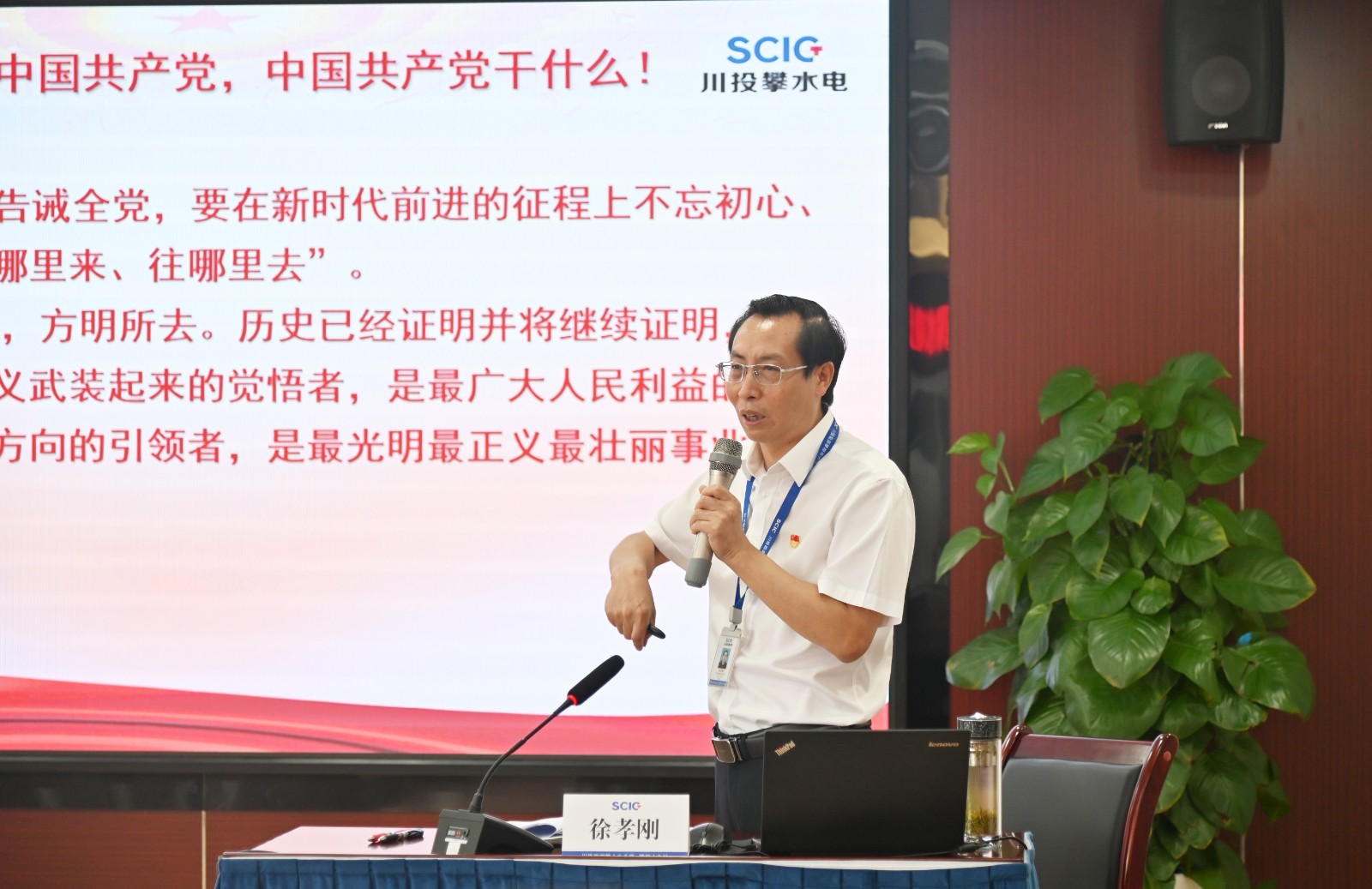 按照川投集團(tuán)黨委和川投能源黨委總體部署,為深入學(xué)習(xí)貫徹習(xí)近平總書(shū)記來(lái)川視察重要指示精神和四川省第十二次黨代會(huì)精神,傳達(dá)學(xué)習(xí)川投集團(tuán)和川投能源慶祝“七一”表彰大會(huì)精神,7月1日下午,攀水電公司組織召開(kāi)慶祝建黨101周年先進(jìn)表彰大會(huì)暨“書(shū)記講堂”,由川投能源副總經(jīng)理、攀水電公司黨總支書(shū)記、董事長(zhǎng)、攀新能源公司董事長(zhǎng)徐孝剛講授專(zhuān)題黨課,宣傳習(xí)近平總書(shū)記來(lái)川視察重要指示精神和省第十二次黨代會(huì)精神。會(huì)議由黨總支委員、董事會(huì)秘書(shū)、工會(huì)主席鄧勇主持,攀水電公司全體黨員、非黨干部,參建單位負(fù)責(zé)人、聯(lián)建支部支委及“兩優(yōu)一先”表彰對(duì)象共計(jì)45人參會(huì)。