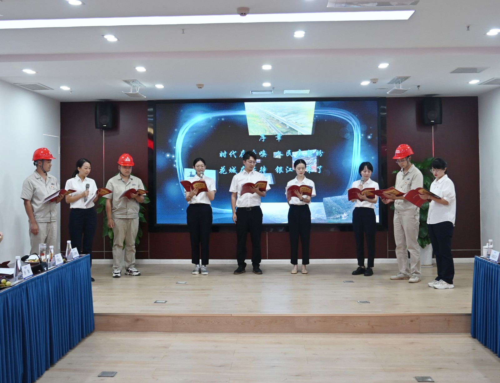 會議在公司青年職工精心準備的詩歌朗誦“銀江組歌”中拉開帷幕,“時代在呼喚,人民在期盼?;ǔ窃诘却?,銀江我來了……”公司各部門員工代表以朗誦的方式聲情并茂的講述了銀江水電站自2019年7月開工建設(shè)三年歷程,贏得了參會人員的陣陣掌聲。