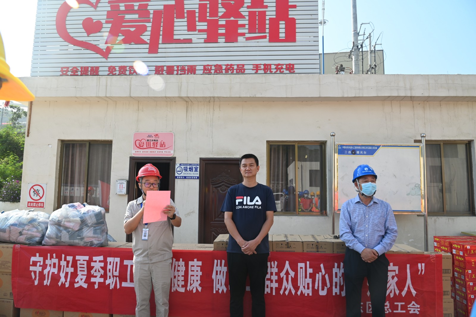 雖然是上午9點(diǎn),但盛夏的烈日已炙烤著銀江水電站工地。在銀江水電站“愛心驛站”,汪慶元首先致敬全體工友烈日下的“銀江精神”,高度贊揚(yáng)了一線建設(shè)者三年來為銀江水電站建設(shè)做出的積極貢獻(xiàn),并鼓勵他們要戰(zhàn)勝高溫酷暑等重重難關(guān),堅(jiān)守崗位完成工程建設(shè)任務(wù)。劉欣在講話中談到:東區(qū)工會心系工友,是大家的“娘家人”,希望大家保重身體,平安度夏,在落實(shí)安全防護(hù)的前提下積極工作,保質(zhì)保量推進(jìn)項(xiàng)目施工,為攀枝花的經(jīng)濟(jì)建設(shè)做出更大的貢獻(xiàn)。