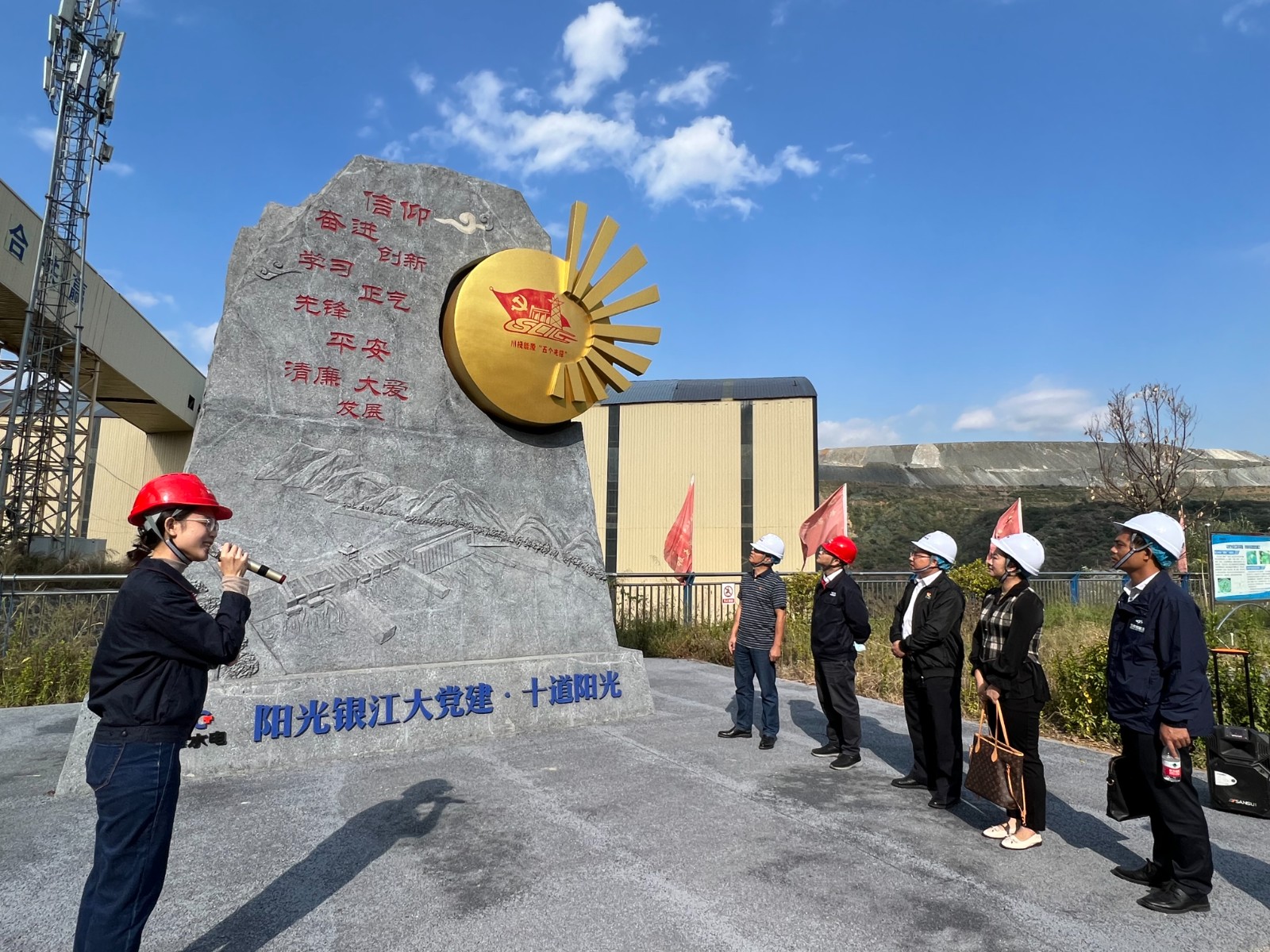 覃鳳荏一行首先來到銀江水電站施工現(xiàn)場,參加了銀江水電站大壩首倉混凝土澆筑活動。在現(xiàn)場聽取了銀江水電站工程整體規(guī)劃、建設意義、工期計劃等基本情況介紹,并參觀了鋼筋加工車間、試驗室等地。隨后,覃鳳荏一行參觀了攀水電公司“七色陽光大黨建”宣傳陣地,詳細了解了“十道陽光行動計劃”等內(nèi)容。