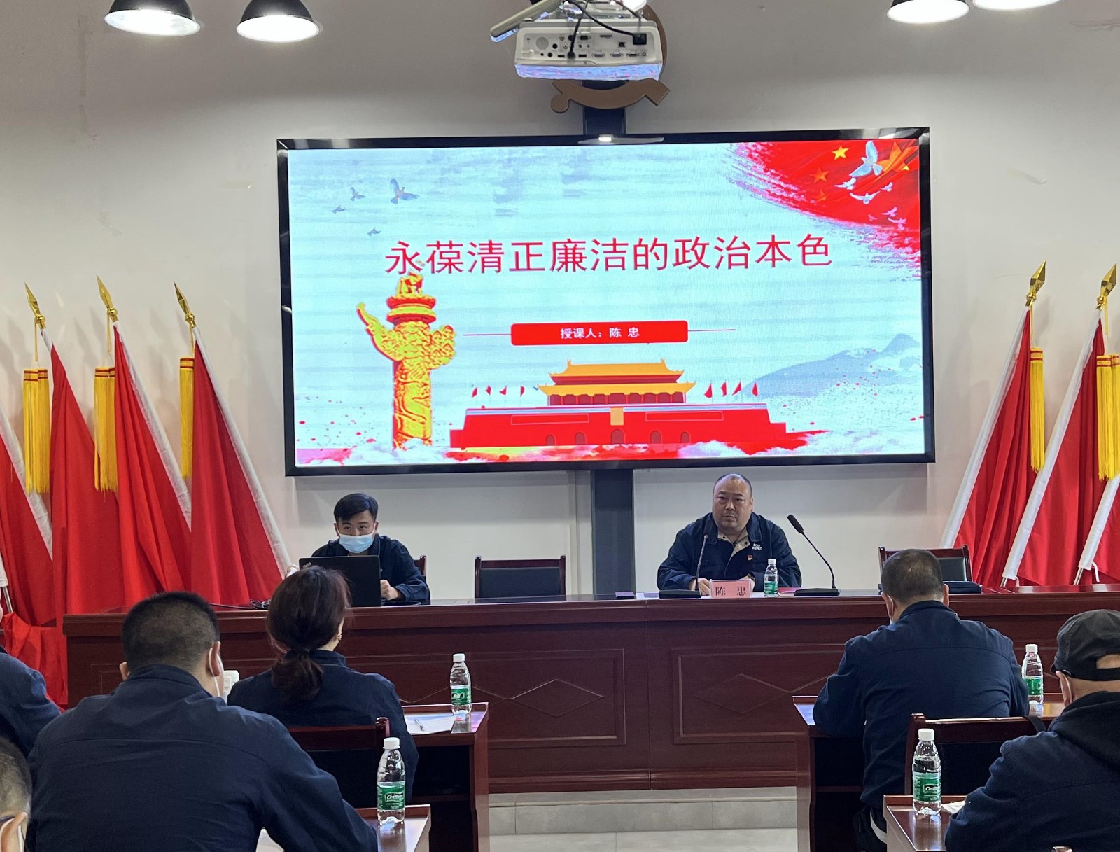 隨后陳忠從永葆清正廉潔的政治本色,要把增強黨性修養(yǎng)作為終身課題;永葆清正廉潔的政治本色,要嚴以律己、心存敬畏;永葆清正廉潔的政治本色,要傳承優(yōu)良作風,涵養(yǎng)浩然正氣;永葆清正廉潔的政治本色,要堅持秉公用權(quán),站穩(wěn)人民立場四個方面闡述了深化黨風廉政建設(shè)、營造風清氣正政治氛圍的重要意義和主要舉措;強調(diào)大家必須牢記,全面從嚴治黨永遠在路上,黨的自我革命永遠在路上,決不能有松勁歇腳、疲勞厭戰(zhàn)的情緒,必須持之以恒推進全面從嚴治黨,深入推進新時代黨的建設(shè)新的偉大工程,以黨的自我革命引領(lǐng)社會革命。黨課結(jié)束后,大家共同觀看了由中央宣傳部攝制的大型電視專題片《領(lǐng)航》之“自我革命”,進一步鞏固了以嚴的基調(diào)強化正風肅紀、堅決打贏反腐敗斗爭的信心和決心。