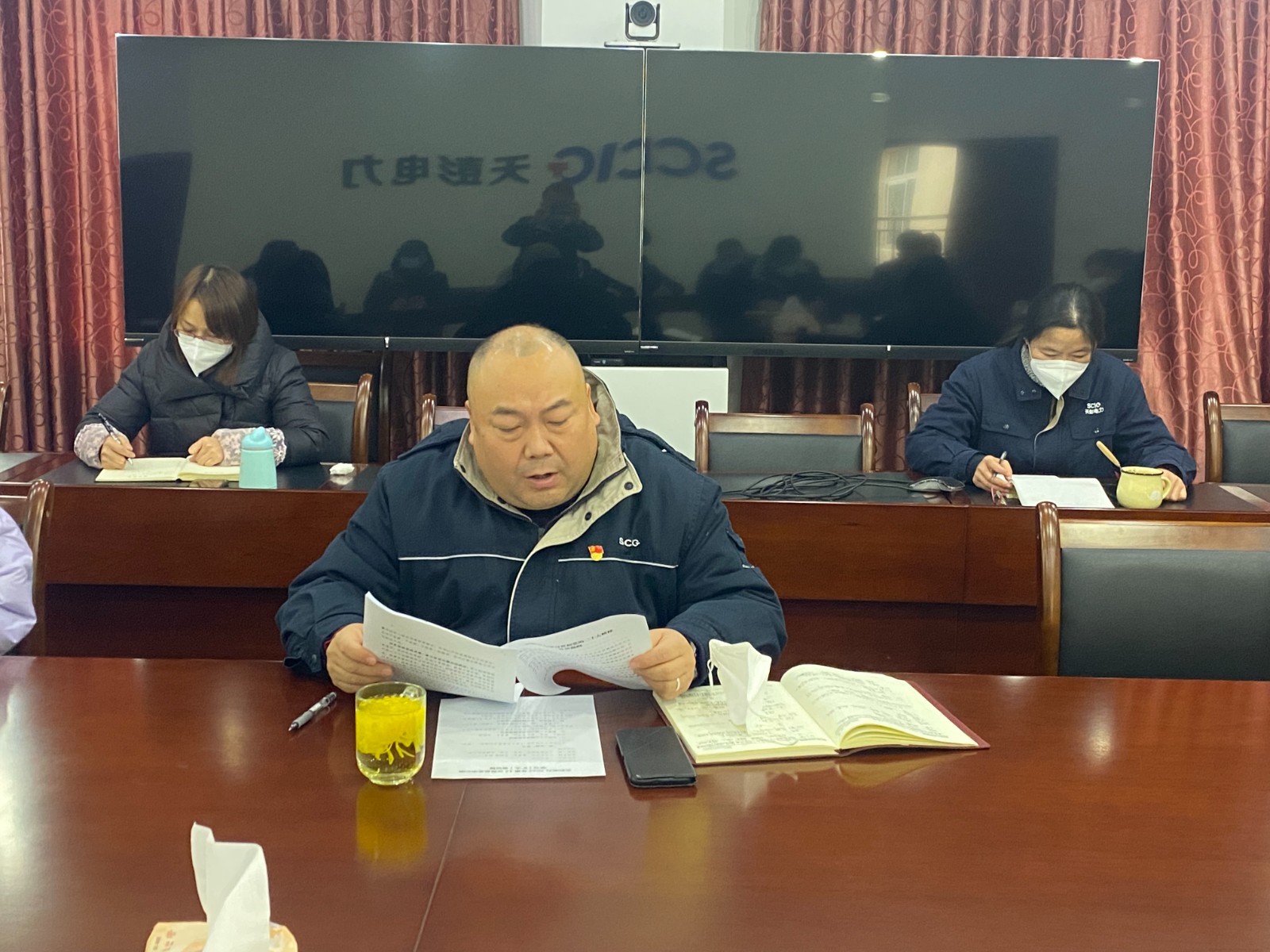 為全面掀起學習宣傳貫徹黨的二十大精神熱潮,推動黨的二十大精神走深走實,12月20日,天彭電力黨總支召開2022年第12次中心組學習(擴大)會,黨總支書記、董事長、總經(jīng)理陳忠作黨的二十大精神專題宣講報告,公司領導班子、黨員干部、關鍵崗位人員參加學習。