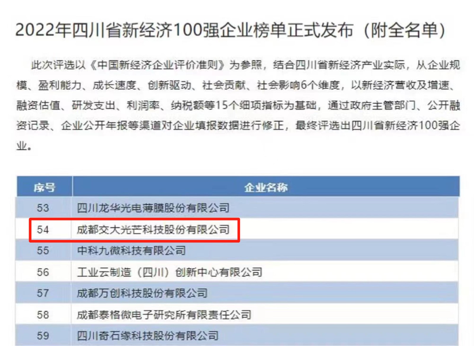 近日,四川省工業(yè)和信息化研究院發(fā)布“2022年四川省新經(jīng)濟(jì)100強(qiáng)企業(yè)榜單”,交大光芒成功獲評入圍,標(biāo)志其位居四川省以新技術(shù)、新產(chǎn)業(yè)、新業(yè)態(tài)、新模式為特征的新經(jīng)濟(jì)企業(yè)的前列。