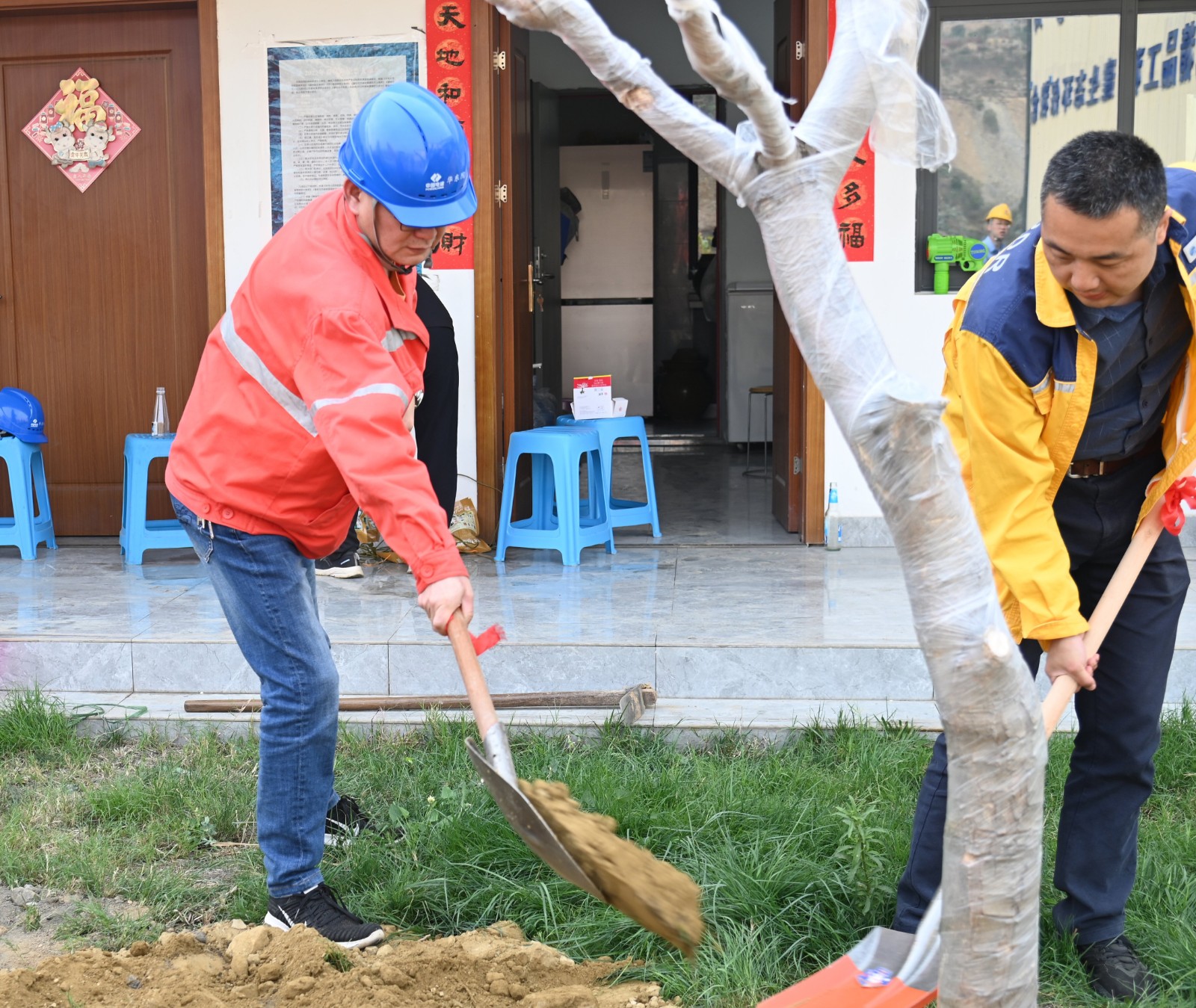 隨后,在金河村芒果專家的專業(yè)輔導(dǎo)下大家積極動手、挖坑種樹,各支部責(zé)任田呈現(xiàn)一派緊張有序的勞動景象,參加植樹活動的黨員、職工個個熱情洋溢、干勁十足,有的拿鐵鍬、有的運(yùn)樹苗,你追我趕,每個環(huán)節(jié)認(rèn)真到位,到處都是忙碌的身影和勞動的歡聲笑語,各支部相繼完成植樹目標(biāo),并在專家的驗收后簽名、掛牌,一顆顆共建之樹在大黨建宣傳陣地安家落戶。