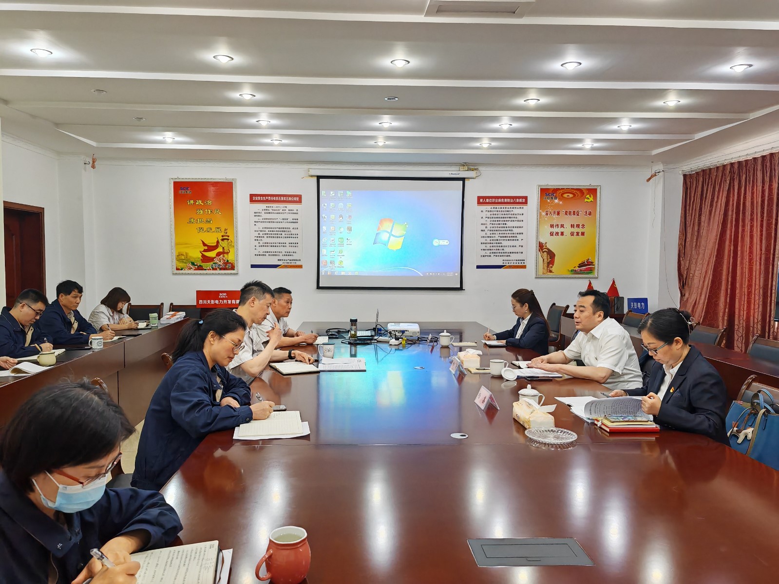 為深入開展學(xué)習(xí)貫徹習(xí)近平新時代中國特色社會主義思想主題教育,推動全體黨員在以學(xué)鑄魂、以學(xué)增智、以學(xué)正風(fēng)、以學(xué)促干方面取得實實在在成效,6月2日,川投電力黨委書記、董事長楊濤、黨委副書記楊鑫、副總經(jīng)理馬月華,黨群工作部一行赴天彭電力督導(dǎo)主題教育并開展調(diào)研工作。