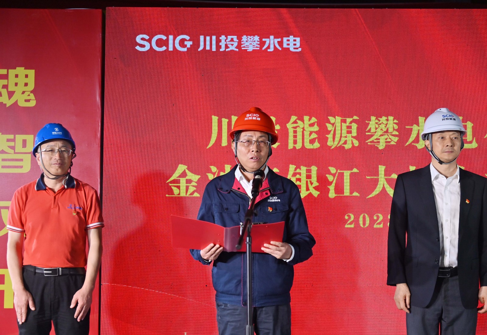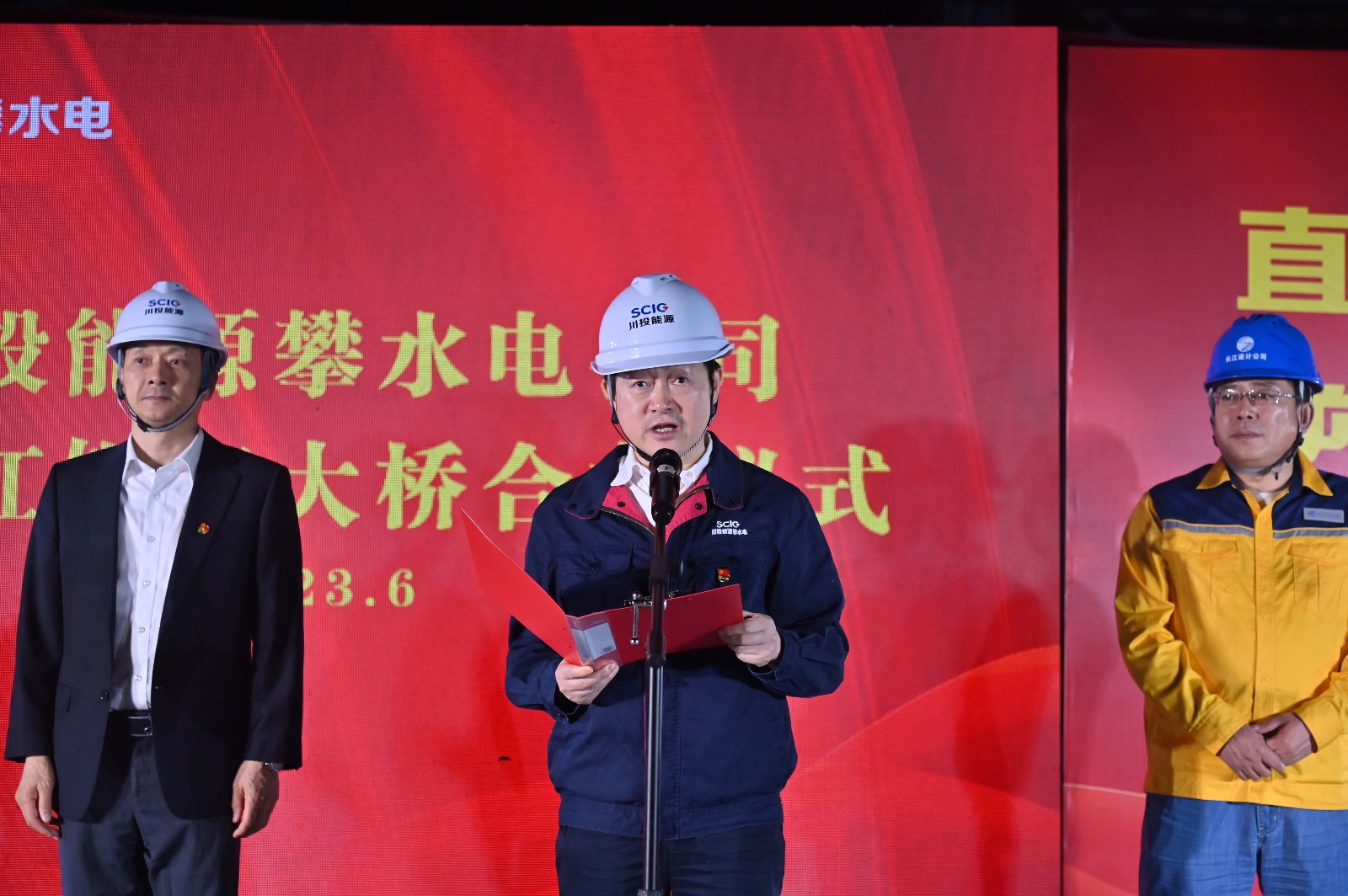 當(dāng)前正值川投能源深入開展學(xué)習(xí)貫徹習(xí)近平新時(shí)代中國特色社會主義思想主題教育的時(shí)期,攀水電黨總支以高度政治責(zé)任感扎實(shí)推進(jìn)主題教育走深走實(shí),確保學(xué)用結(jié)合取得實(shí)效。2023年6月15日,夜晚的銀江大橋施工現(xiàn)場燈火璀璨,連續(xù)幾天超過40℃高溫的攀枝花迎來了難得的涼爽天氣,攀水電公司組織開展了金沙江銀江大橋合龍儀式,川投能源黨委副書記、工會主席冉蘭平,黨委委員、副總經(jīng)理、總法律顧問楊平,川投能源副總經(jīng)理、攀水電公司黨總支書記、董事長徐孝剛出席儀式,儀式由攀水電公司黨總支副書記、總經(jīng)理吳巍嶼主持。公司相關(guān)領(lǐng)導(dǎo)及參建單位共計(jì)50余人參加儀式。