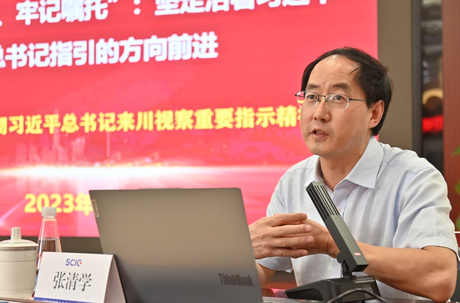 張清學結合習近平總書記三次來川視察,從11個方面深入淺出詳細講授了習近平總書記來川視察的重要指示精神,結合時政熱點,善用黨史故事,圍繞聚焦重點再發(fā)力,緊盯生態(tài)環(huán)境保護、科技創(chuàng)新和高校畢業(yè)生就業(yè)、安全生產(chǎn)、地質(zhì)災害防治等重點工作進行講述。