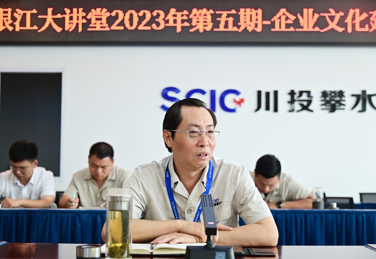 為推動(dòng)學(xué)習(xí)貫徹習(xí)近平新時(shí)代中國特色社會(huì)主義思想主題教育走深走實(shí),全面落實(shí)黨的二十大精神,堅(jiān)定文化自信,不斷適應(yīng)新時(shí)代國企文化建設(shè)的新形勢、新任務(wù)和新要求,充分發(fā)揮企業(yè)文化在推進(jìn)企業(yè)高質(zhì)量發(fā)展中的積極作用,7月30日,攀水電公司組織開展了2023年第五期銀江大講堂——企業(yè)文化建設(shè)專題講座暨研討會(huì),會(huì)議邀請(qǐng)到了四川省市場監(jiān)督管理學(xué)會(huì)理事、攀枝花學(xué)院經(jīng)濟(jì)與管理學(xué)院副教授顧福珍授課。川投能源副總經(jīng)理、公司黨總支書記、董事長、企業(yè)文化建設(shè)領(lǐng)導(dǎo)小組組長徐孝剛、公司在攀領(lǐng)導(dǎo)及全體員工共計(jì)40余人參加會(huì)議。