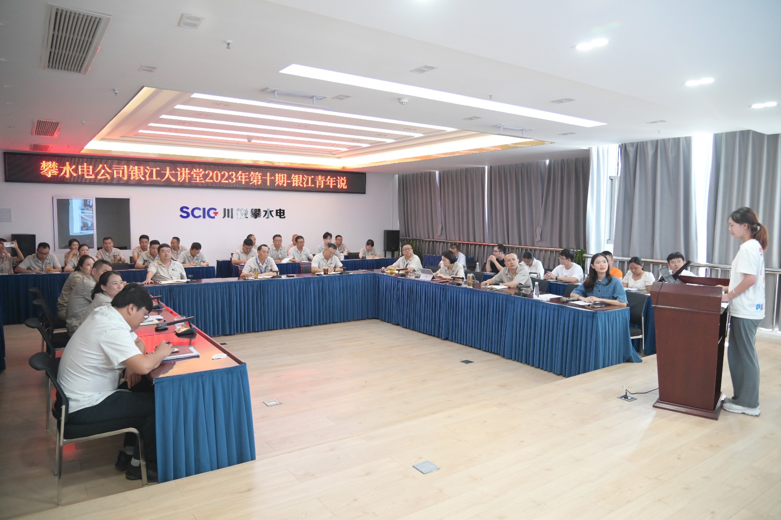 為進(jìn)一步做好攀水電公司團(tuán)青工作,打造朝氣蓬勃的銀江青年隊(duì)伍,2023年8月16日下午,公司組織開展2023年第10期銀江大講堂,本次大講堂形式新穎、不同往常,而是由銀江青年擔(dān)當(dāng)主角,大膽分享他們眼中的“銀江風(fēng)景”。攀水電公司領(lǐng)導(dǎo)、各部門負(fù)責(zé)人、全體員工公司共計(jì)40余人參加。