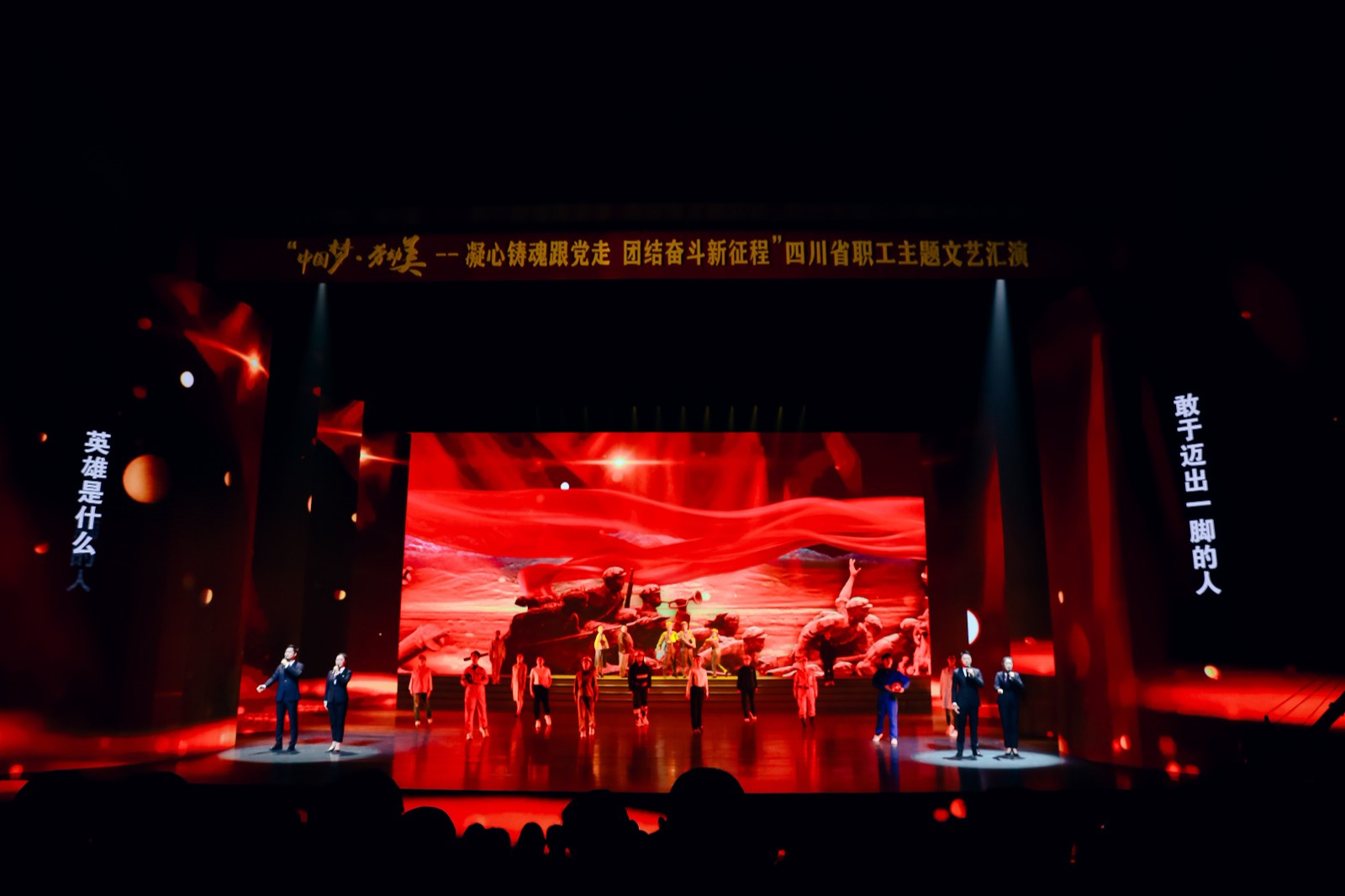 11月22日晚,“中國夢?勞動美——凝心鑄魂跟黨走 團結(jié)奮斗新征程”四川省職工主題文藝匯演在成都華僑城大劇院舉行。川投集團工會選送的誦讀作品《新時代的英雄》在舞臺上精彩亮相。該節(jié)目曾榮獲四川省第二屆職工誦讀比賽金獎,本次經(jīng)過層層選拔,由川投能源作為主創(chuàng)班底,聯(lián)合川投信產(chǎn)、資陽口院選送優(yōu)秀選手共同呈現(xiàn)。