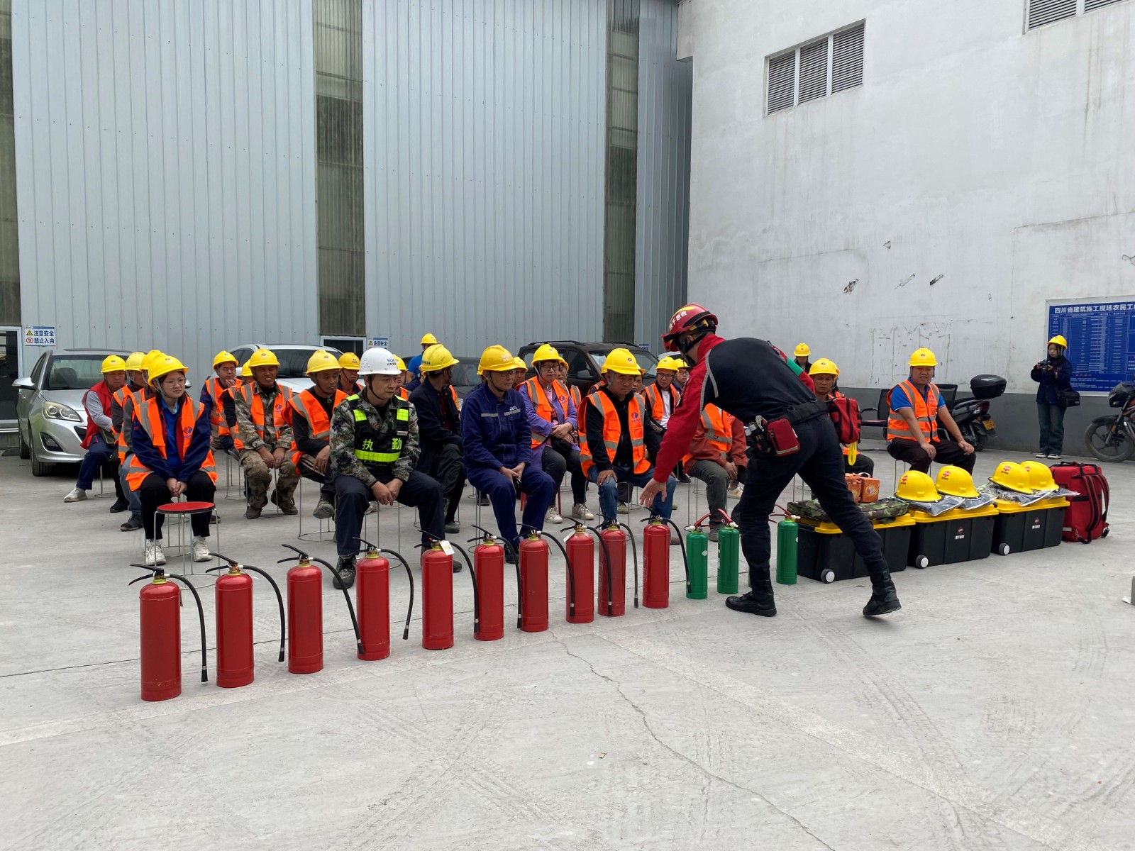 本次培訓通過理論和實踐相結合,為作業(yè)人員講授了消防工作基本原則、消防責任制、消防基本知識,包括公共營業(yè)場所、機關辦公場所、特點和預防措施;常見火災的案例分析、原因特點和消防措施;初期火災撲救及正確的逃生技巧;常用的消防設施種類和正確的使用方法;突發(fā)情況下自我防范的方法和對策。隨后,在施工現(xiàn)場,模擬了各類滅火器實戰(zhàn)應用、人員傷情處置、火場逃生等情景,培訓學員逐一進行了實際操作練習,培訓老師全程進行指導,直至全體學員全部操作合格。