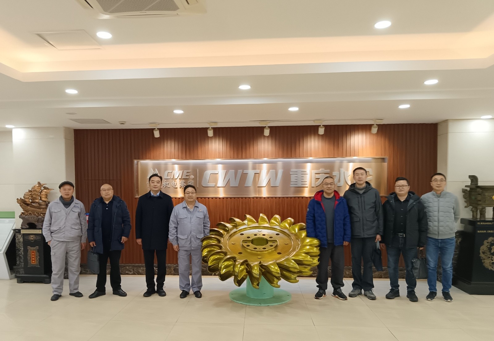 在重慶水輪,重慶水輪董事長彭忠對調(diào)研組的到訪表示熱烈歡迎,并介紹了公司發(fā)展歷程、技術(shù)能力、人才儲備等情況,分享了水輪機(jī)組修復(fù)方面的前沿技術(shù)。隨后,彭忠陪同調(diào)研組參觀了一線生產(chǎn)車間,詳細(xì)介紹了水電設(shè)備的生產(chǎn)流程、生產(chǎn)工藝、產(chǎn)品質(zhì)量把控、安全管理、進(jìn)度保障等重點(diǎn)問題關(guān)鍵環(huán)節(jié)。楊濤表示,希望重慶水輪充分發(fā)揮自身技術(shù)資源,為我司設(shè)備維修維護(hù)、技術(shù)改造方面給予一如既往的支持。