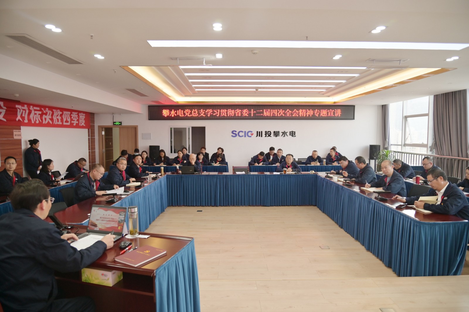 為深入學(xué)習(xí)宣傳貫徹省委十二屆四次全會(huì)精神,準(zhǔn)確把握省委推進(jìn)城鄉(xiāng)融合發(fā)展的重要戰(zhàn)略部署,1月27日,川投能源副總經(jīng)理、攀水電公司黨總支書記、董事長(zhǎng)徐孝剛進(jìn)行省委十二屆四次全會(huì)精神專題宣講。結(jié)合工程建設(shè)實(shí)際,本次宣講設(shè)置了分會(huì)場(chǎng),各聯(lián)建支部以線上方式參加,公司全體黨員、干部、參建單位黨員代表共計(jì)80人參加此次宣講會(huì)。