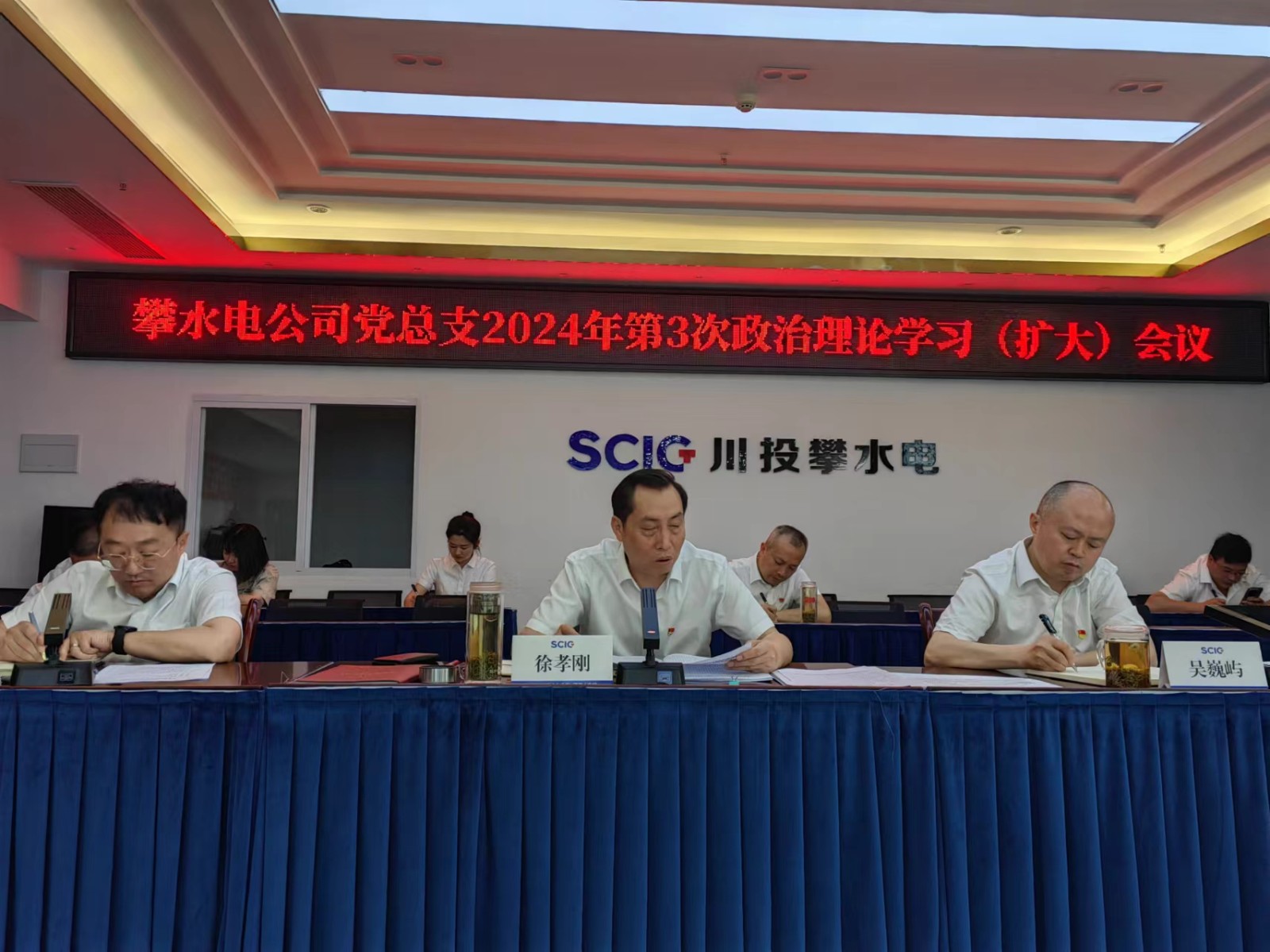3月29日下午,攀水電公司黨總支在2620會議室組織召開了2024年第3次政治理論學習(擴大)會議。會議由川投能源副總經(jīng)理、攀水電公司黨總支書記、董事長徐孝剛主持,政治理論學習會成員、全體黨員、非黨干部、入黨分子共30余人參加學習。