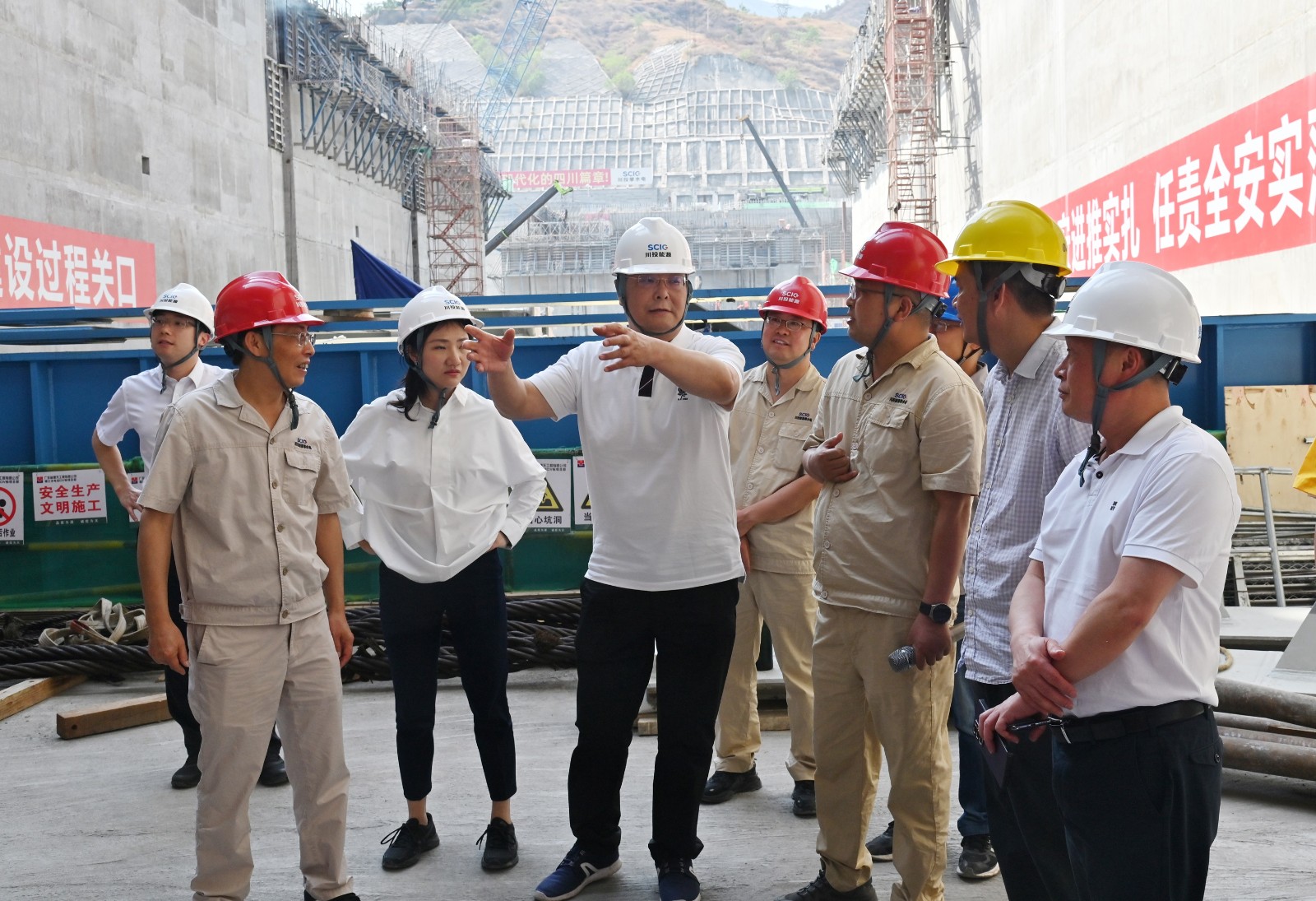 5月23日,川投集團(tuán)黨委副書記、副董事長、總經(jīng)理李文志率隊赴銀江水電站檢查指導(dǎo)工作,川投集團(tuán)副總經(jīng)理張昊、經(jīng)營管理部部長涂瑩、相關(guān)部門人員隨同檢查。川投能源副總經(jīng)理、攀水電公司黨總支書記、董事長徐孝剛陪同檢查。