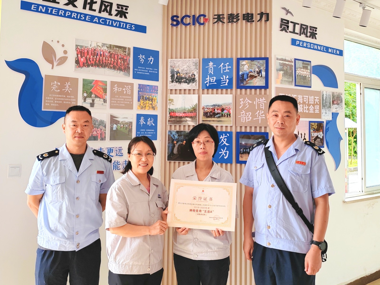 6月11日,天彭電力喜獲殊榮:國(guó)家稅務(wù)總局彭州市稅務(wù)局向我公司授予了“彭州市‘2019-2023年度納稅信用五連A’”榮譽(yù)證書,這是稅務(wù)機(jī)關(guān)對(duì)我公司誠(chéng)信納稅、守法經(jīng)營(yíng)的肯定和表彰。