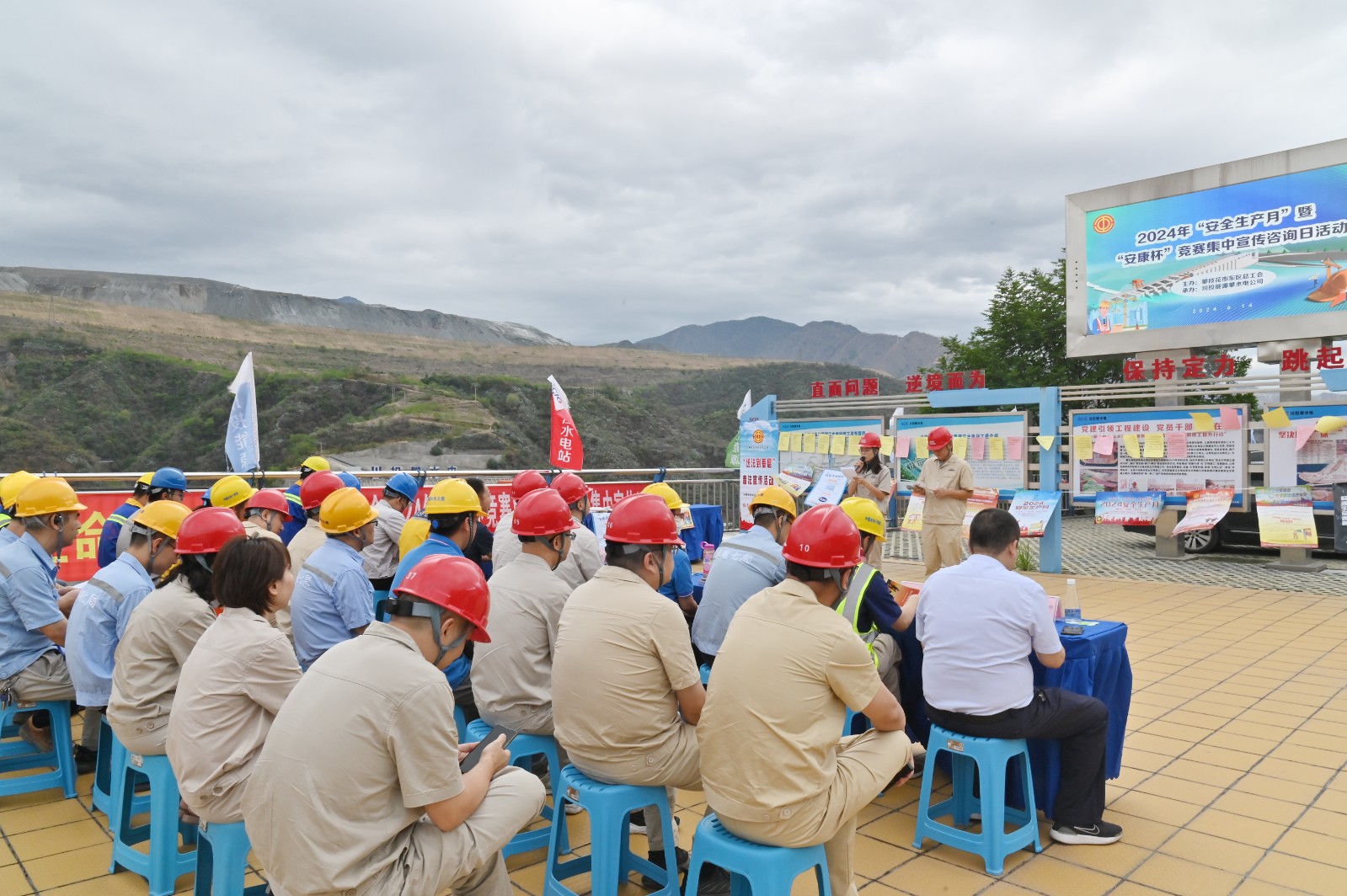 為認(rèn)真落實(shí)各級(jí)政府、川投集團(tuán)關(guān)于安全生產(chǎn)的重大決策部署,進(jìn)一步提升攀水電公司及銀江水電站各參建單位的安全意識(shí)和避險(xiǎn)逃生能力,營(yíng)造關(guān)注和支持安全生產(chǎn)的濃厚氛圍,6月14日上午,攀水電黨總支下轄各支部聯(lián)合開展了2024年“安全生產(chǎn)月”暨“安康杯”競(jìng)賽集中宣傳咨詢主題黨日活動(dòng),攀枝花市東區(qū)總工會(huì)、攀水電公司各支部黨員、團(tuán)青志愿者及參建單位代表共計(jì)50余人參加活動(dòng)。