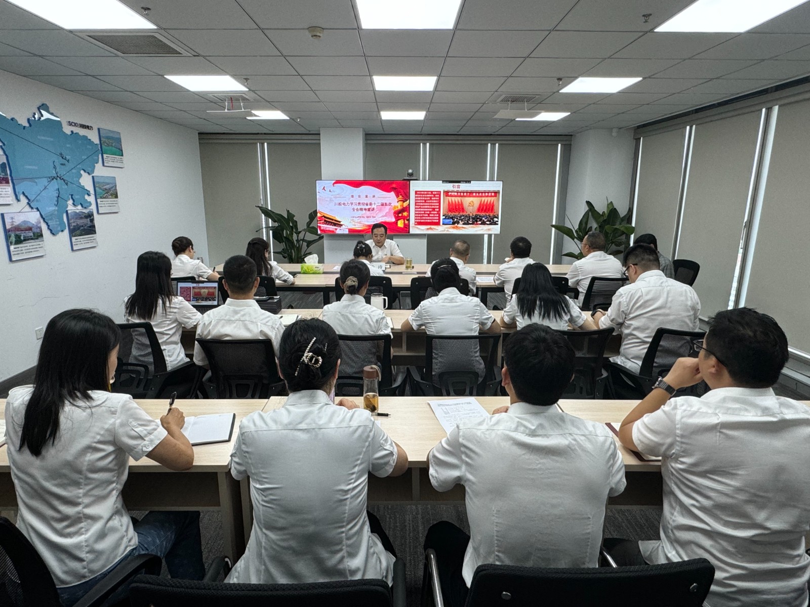 為全面深入學(xué)習(xí)宣傳貫徹省委十二屆五次全會(huì)精神,切實(shí)將公司各級(jí)黨組織和廣大黨員干部的思想行動(dòng)統(tǒng)一到省委的決策部署上來,7月8日,川投電力黨委書記、董事長楊濤專題宣講中共四川省委十二屆五次全會(huì)精神。