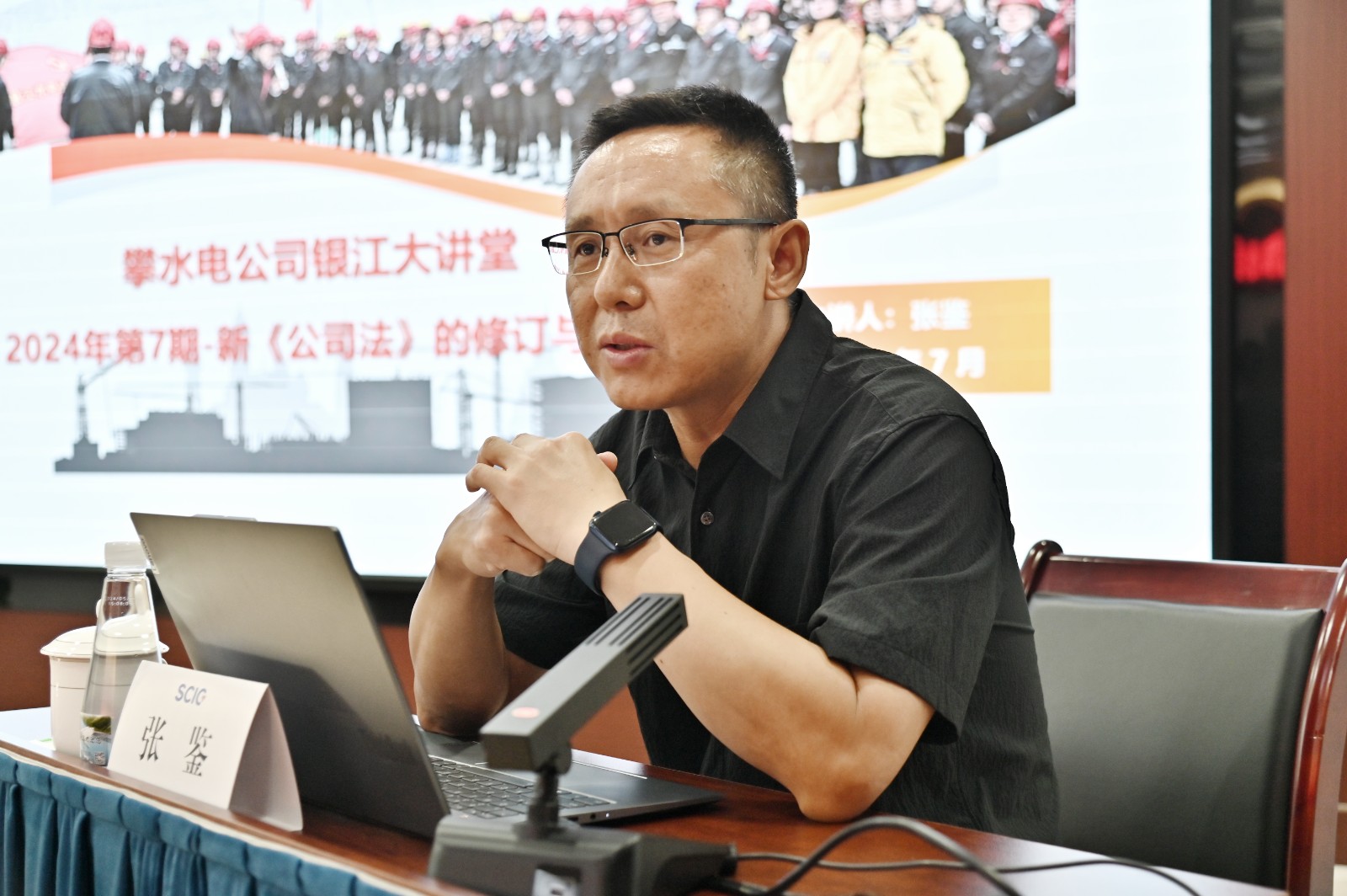 為進(jìn)一步推進(jìn)依法治企和合規(guī)管理,提高董監(jiān)高履職能力,7月11日,攀水電公司組織開展了以“新《公司法》背景下董監(jiān)高履職能力提升”為主題的第7期“銀江大講堂”,邀請(qǐng)攀枝花學(xué)院法學(xué)院專業(yè)教師、資深律師張鑒進(jìn)行專題授課。公司股東單位代表、董事、監(jiān)事及高管共10余人參加培訓(xùn)。