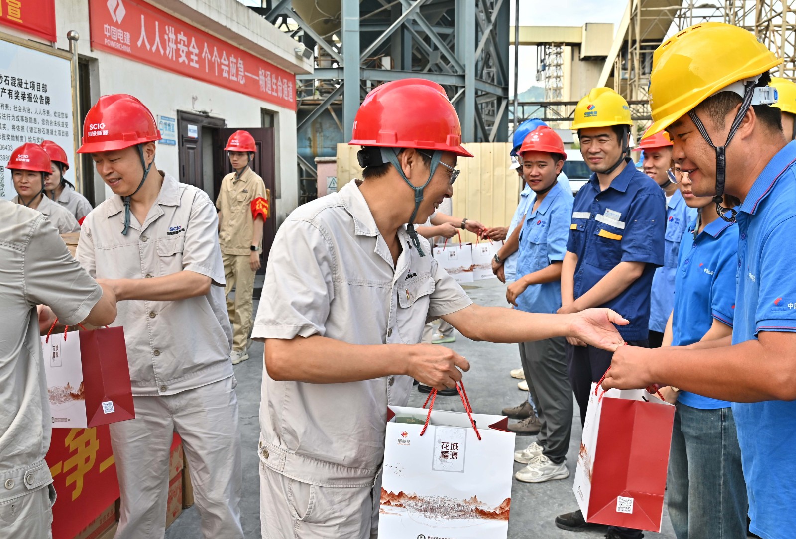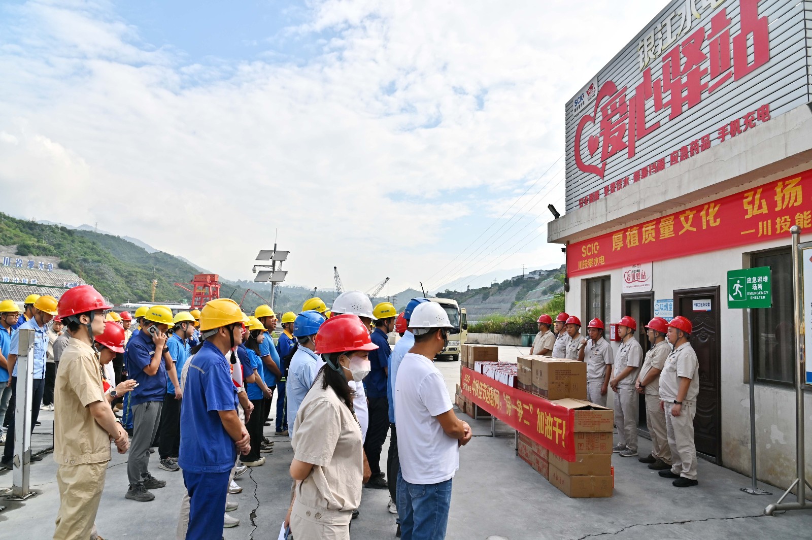 9月17日,正值萬家團圓的中秋佳節(jié),而銀江水電站工地依舊機器轟鳴,一派熱火朝天的繁忙景象。川投能源副總經理、攀水電公司黨總支書記、董事長徐孝剛帶領攀水電公司領導班子全體成員來到愛心驛站,為1200余名建設者送上香甜的月餅和清香的涼茶,向他們表達深切慰問與崇高敬意。