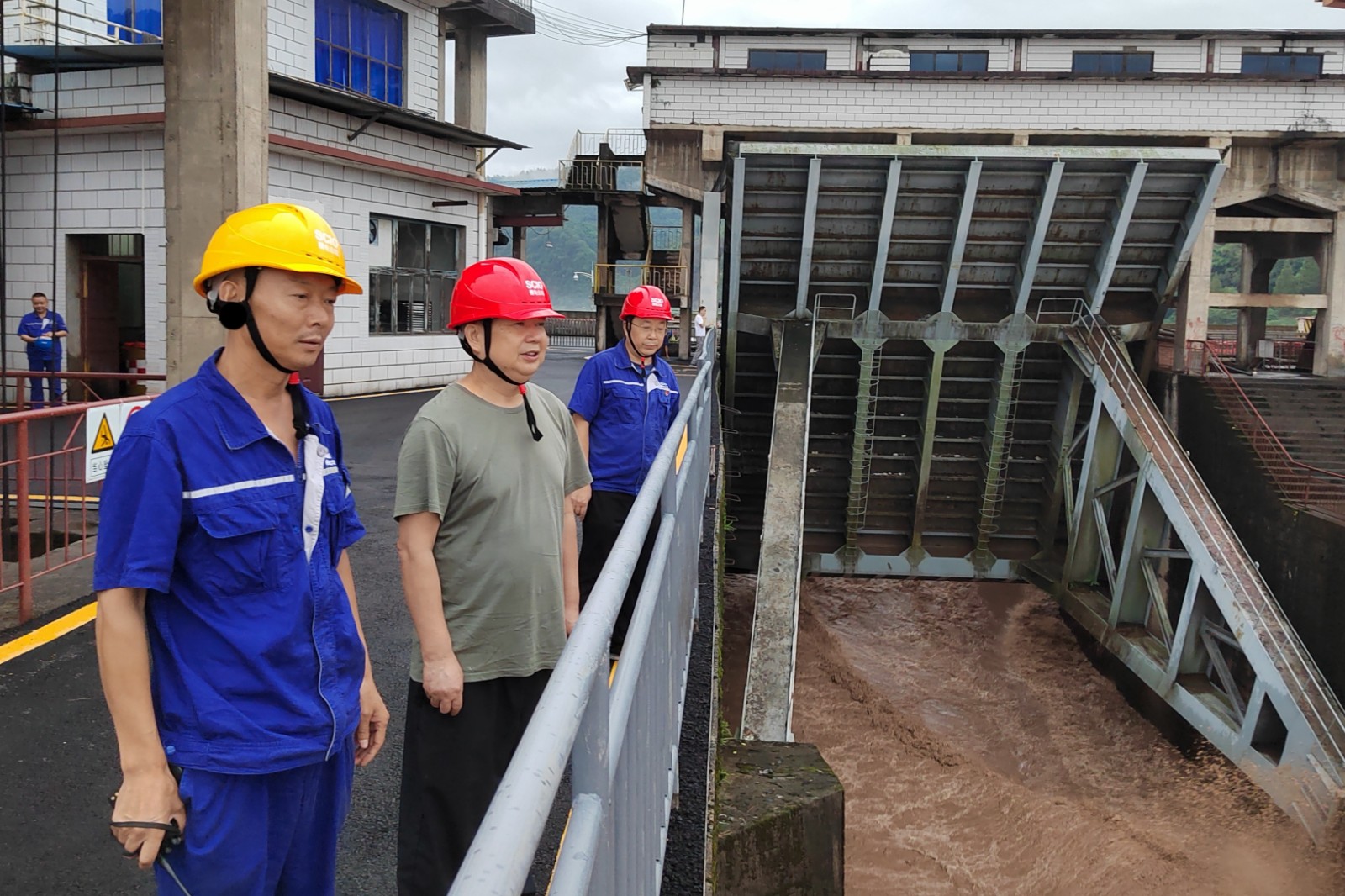 槽漁灘公司黨委書(shū)記、董事長(zhǎng)何光富,副總經(jīng)理蔣玉兵帶領(lǐng)相關(guān)部門(mén)負(fù)責(zé)人趕赴電廠,對(duì)電廠的設(shè)備設(shè)施和防洪工作進(jìn)行檢查,現(xiàn)場(chǎng)聽(tīng)取電廠負(fù)責(zé)人關(guān)于防汛工作的安排、部署及落實(shí)情況匯報(bào)。到庫(kù)區(qū)對(duì)竹菁?jí)?、董河河堤進(jìn)行認(rèn)真檢查,詳細(xì)了解水庫(kù)區(qū)域?qū)嵡椤?