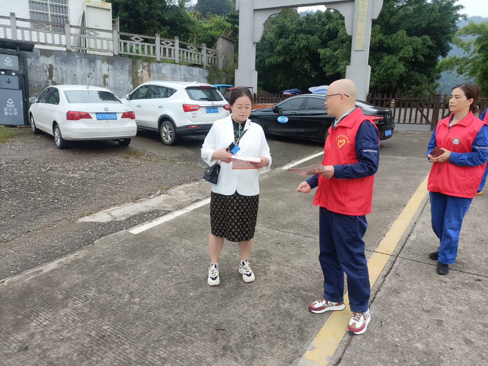 在槽漁灘風(fēng)景區(qū)入口,面對到來的游客,支部黨員張華耐心地為游客提供景區(qū)景點、游覽路線、交通信息等咨詢服務(wù),確保游客能夠順利游覽景區(qū)。黨員鄭健在景區(qū)停車場區(qū)域,協(xié)助景區(qū)工作人員維持交通秩序,引導(dǎo)游客有序停車,確保游客安全與景區(qū)秩序平穩(wěn)。黨員何曉紅、發(fā)展對象楊杰主動向游客普及國家安全與森林防火知識,引導(dǎo)廣大游客自覺維護國家安全,自覺遵守森林防火規(guī)定。
