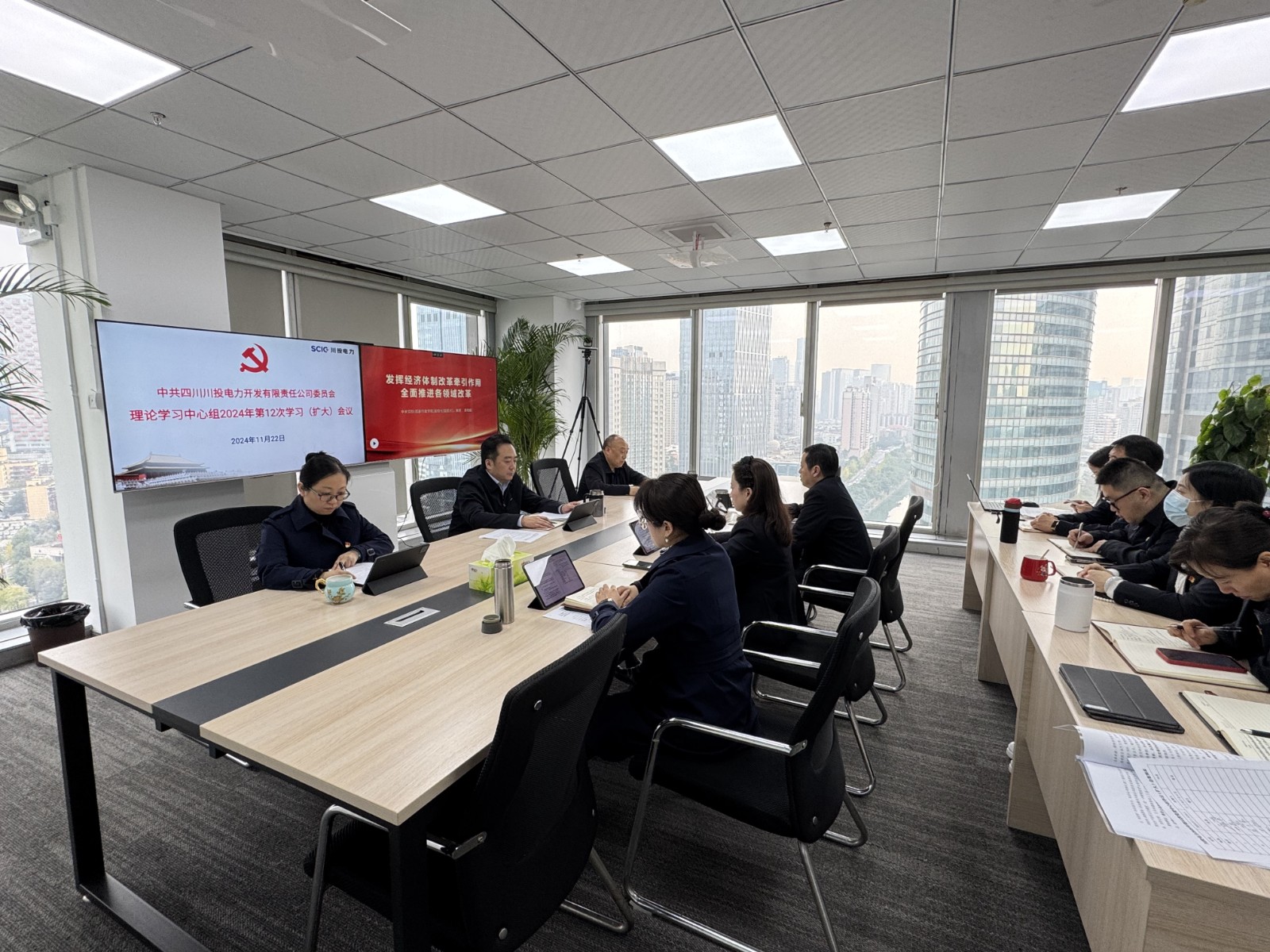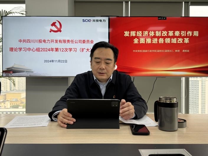11月22日,川投電力黨委理論學習中心組召開2024年第12次學習(擴大)會議。公司黨委書記、董事長楊濤主持會議并結合工作實際提出工作要求。