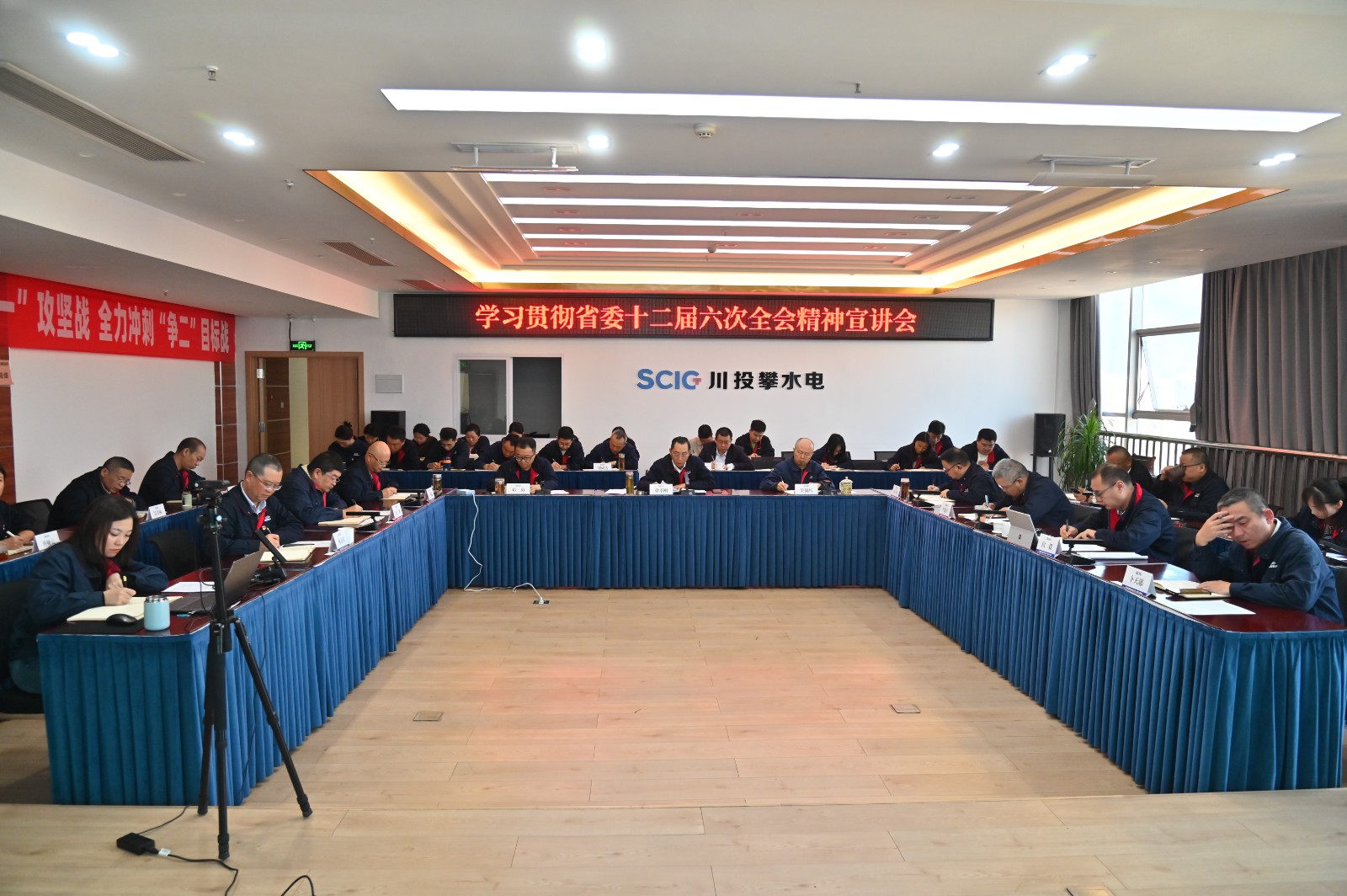 為深入學(xué)習(xí)貫徹省委十二屆六次全會(huì)精神,推動(dòng)全會(huì)精神在攀水電公司和銀江水電站落地落實(shí),11月24日上午,川投能源副總經(jīng)理,攀水電公司黨總支書記、董事長(zhǎng)徐孝剛開展了省委十二屆六次全會(huì)精神宣講。會(huì)議以“現(xiàn)場(chǎng)+視頻”形式召開,公司和水電五局項(xiàng)目部全體黨員、干部職工代表共計(jì)50余人參加學(xué)習(xí)。