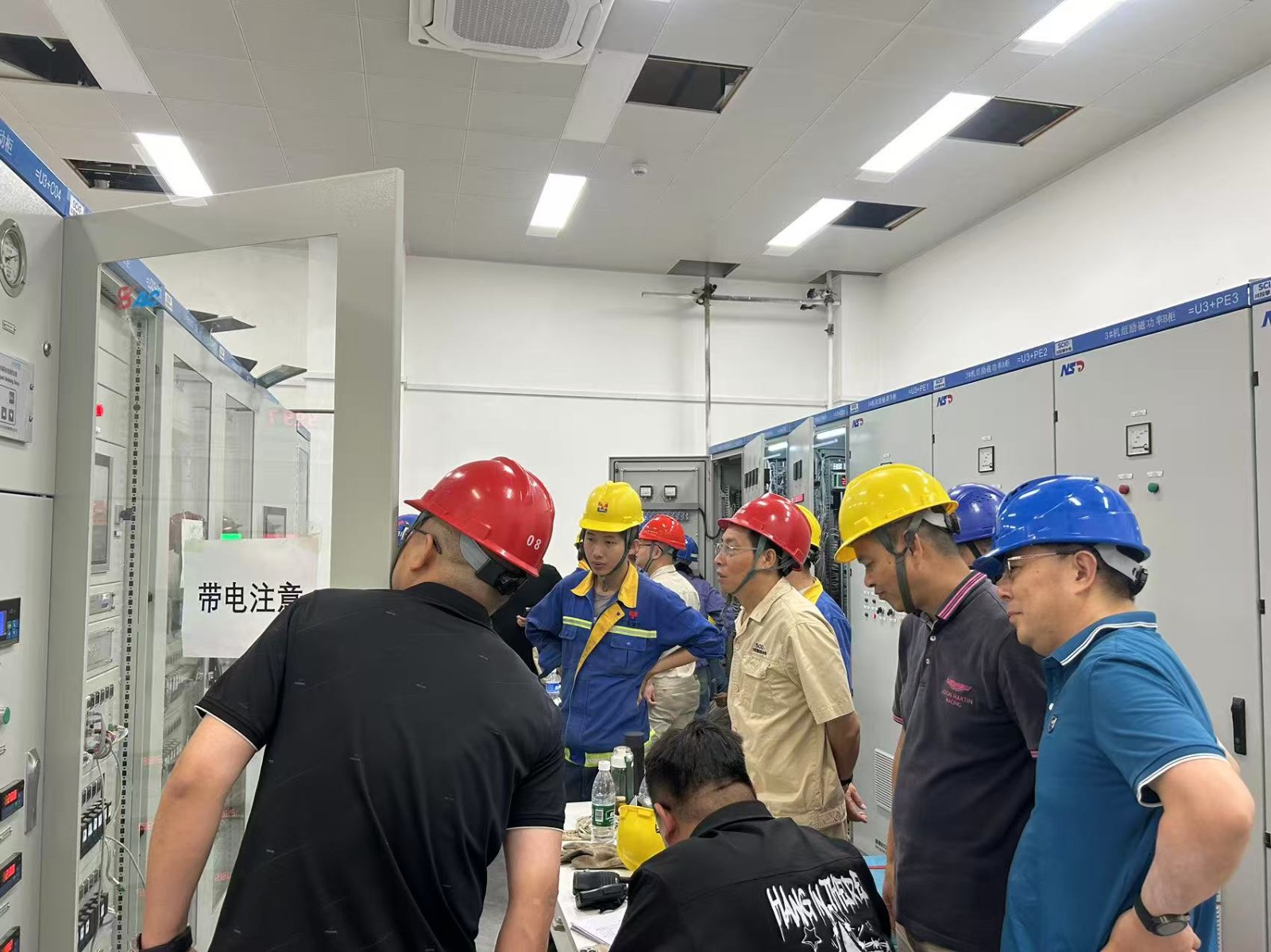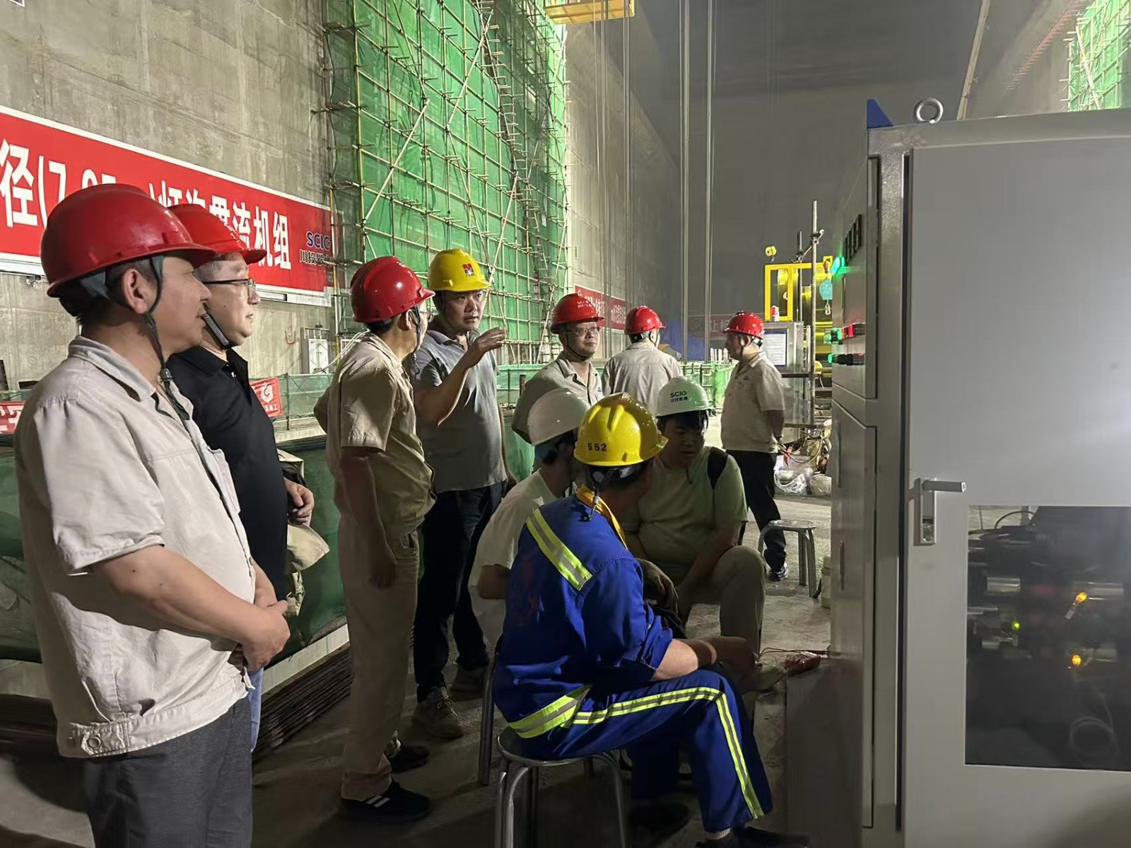2025年攀枝花汛期比往年來的更早一些,為保障銀江水電站順利度汛和后續(xù)機組順利安裝,5月31日3號機組必須完成開機啟動,具備過流條件。為此,進入5月以來,公司帶領各參建單位日夜奮戰(zhàn)在施工現場,實行公司領導承包劃片進行工作督導,施工現場經常深夜還能看見公司領導現場忙碌的身影,經過不懈努力先后完成了3號機組主機、輔機、調速器、機組油、氣和水系統、計算機監(jiān)控系統、勵磁系統、繼電保護系統等設備的安裝調試工作。5月30日隨著尾水事故閘門充水閥緩慢打開,3號機組流道開始充水,5月31日檢查燈炮體、管形座、流道蓋板、導水機構及各排水閥等各部位正常,3號機組各系統單體、聯調正常,隨著指揮長徐孝剛一聲令下,3號機組手動啟動,并成功升速至100%額定轉速,機組振動、擺度、瓦溫等各項指標優(yōu)良,機組運行狀態(tài)穩(wěn)定,首次啟動成功。