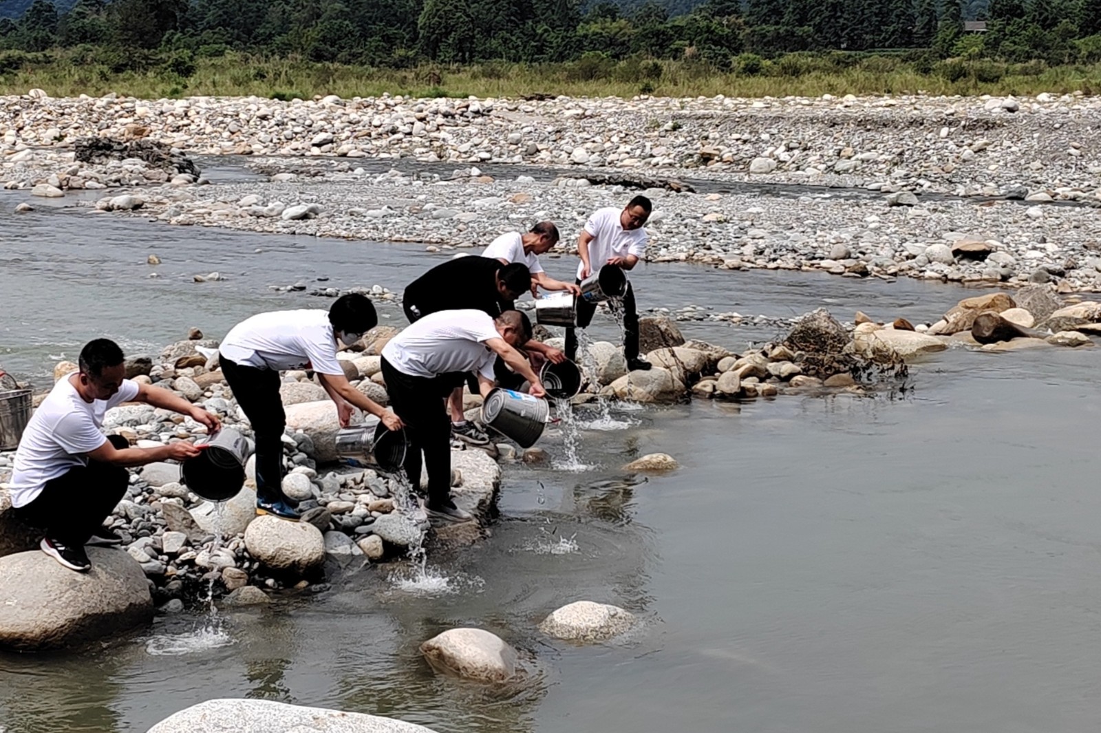 活動現(xiàn)場,在屬地政府、主管部門及群眾代表的見證和參與下,公司員工們將一尾尾活蹦亂跳的魚苗緩緩送入清澈的河水中,陽光下銀鱗閃爍的喜人場面引來岸邊群眾陣陣掌聲。本次活動投放的1萬尾齊口裂腹魚魚苗為湔江河道特有魚種,且按放流尺寸規(guī)格嚴格挑選確保其在自然水流環(huán)境中的適應(yīng)生存能力,對于恢復所在水域水生生物資源,促進生態(tài)系統(tǒng)平衡具有重要的意義。