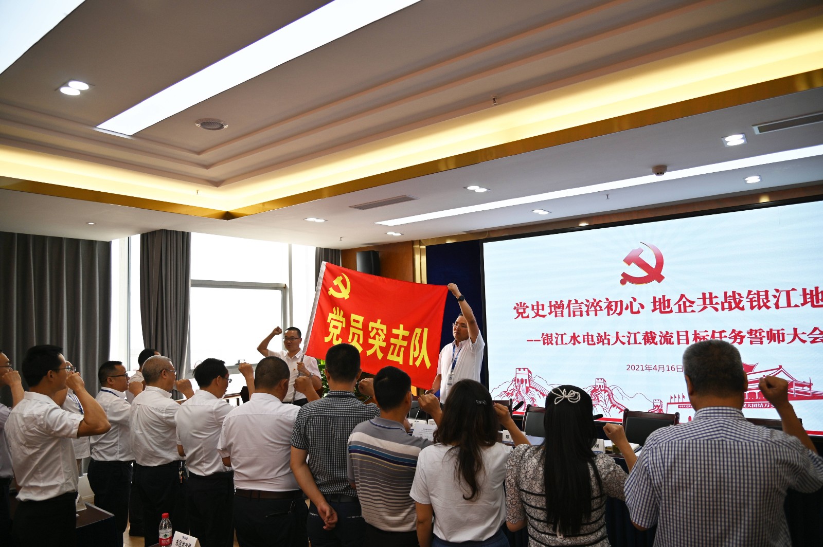 會(huì)上,全體參會(huì)人員共同學(xué)習(xí)了市委書(shū)記張正紅在市級(jí)領(lǐng)導(dǎo)干部和縣級(jí)主要負(fù)責(zé)同志讀書(shū)班暨市委理論學(xué)習(xí)中心組專題學(xué)習(xí)(擴(kuò)大)會(huì)議上的講話精神;蔡承德宣讀了銀江水電站項(xiàng)目建設(shè)黨員突擊隊(duì)人員名單;徐孝剛與陳康共同向黨員突擊隊(duì)授旗并簽訂目標(biāo)承諾書(shū);全體突擊隊(duì)隊(duì)員在隊(duì)旗前進(jìn)行了莊重宣誓。