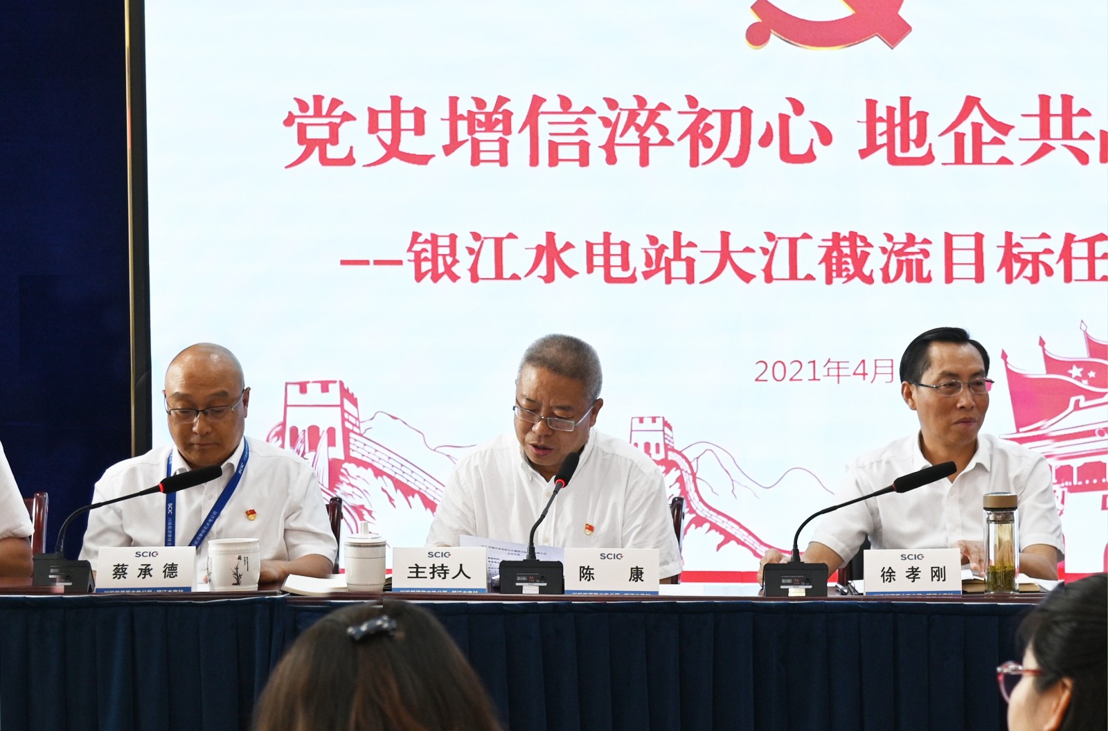 會(huì)議由東區(qū)區(qū)委常委、政法委書(shū)記、銀江水電站項(xiàng)目推進(jìn)領(lǐng)導(dǎo)小組常務(wù)副組長(zhǎng)陳康主持,川投能源副總經(jīng)理、攀水電公司黨總支書(shū)記、董事長(zhǎng)徐孝剛,黨總支副書(shū)記、總經(jīng)理蔡承德,副總經(jīng)理周軍及公司黨員代表和東區(qū)政府相關(guān)部門等共計(jì)40 余人參會(huì)。