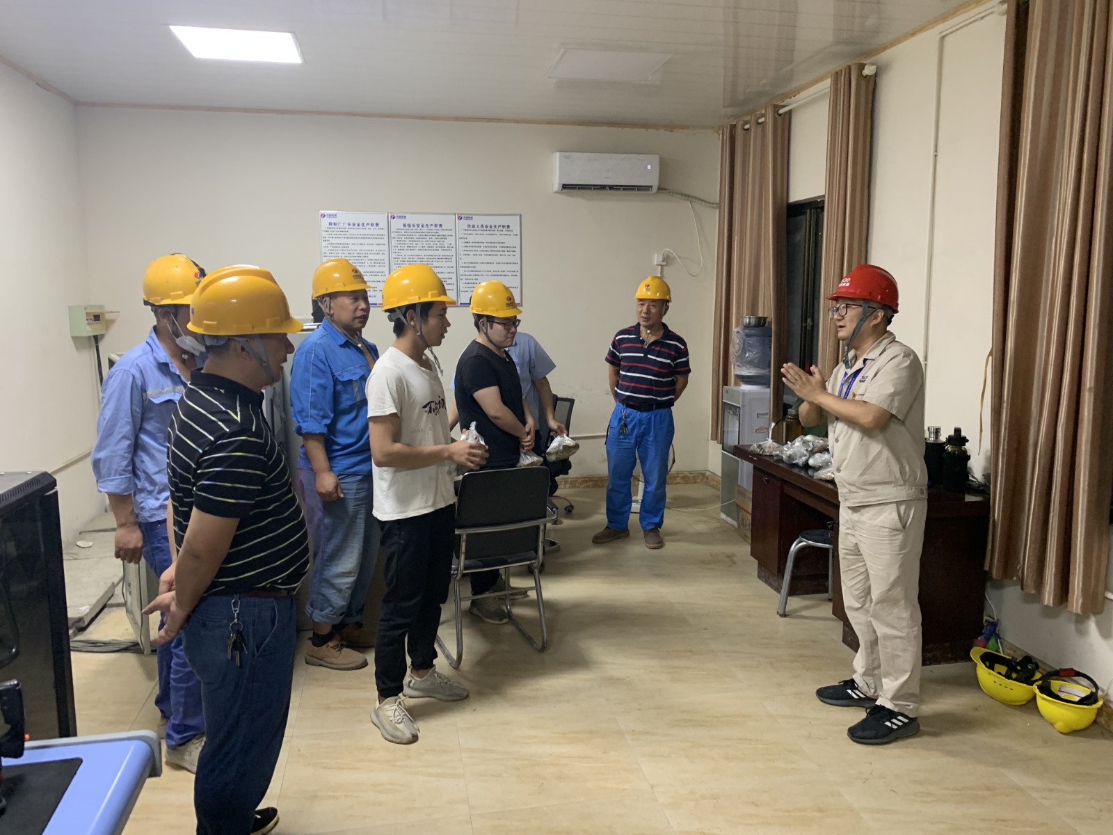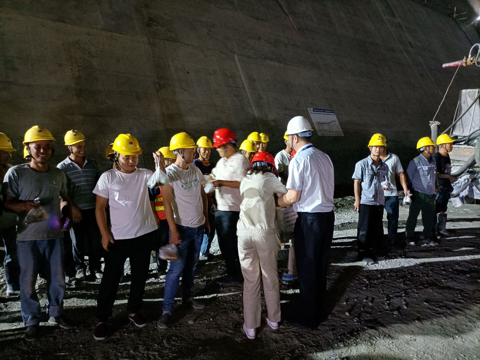 6月13日端午節(jié)前夕深夜,公司值班領(lǐng)導(dǎo)、黨總支委員、董事會秘書、工會主席鄧勇,總經(jīng)理助理唐伽帶領(lǐng)值班人員,對銀江水電站工地現(xiàn)場防洪度汛值班點(diǎn)位及施工現(xiàn)場進(jìn)行了檢查;公司志愿者服務(wù)隊(duì)共計(jì)10余人對節(jié)日期間堅(jiān)守在銀江水電站工地夜間施工的一線人員進(jìn)行了慰問。