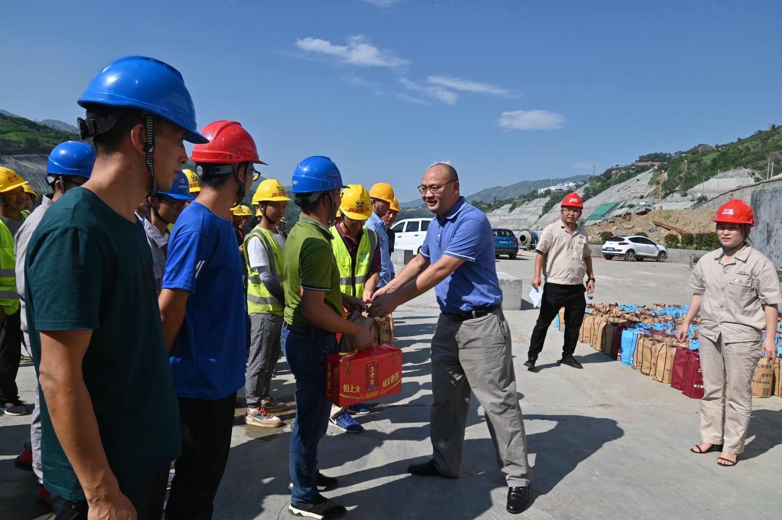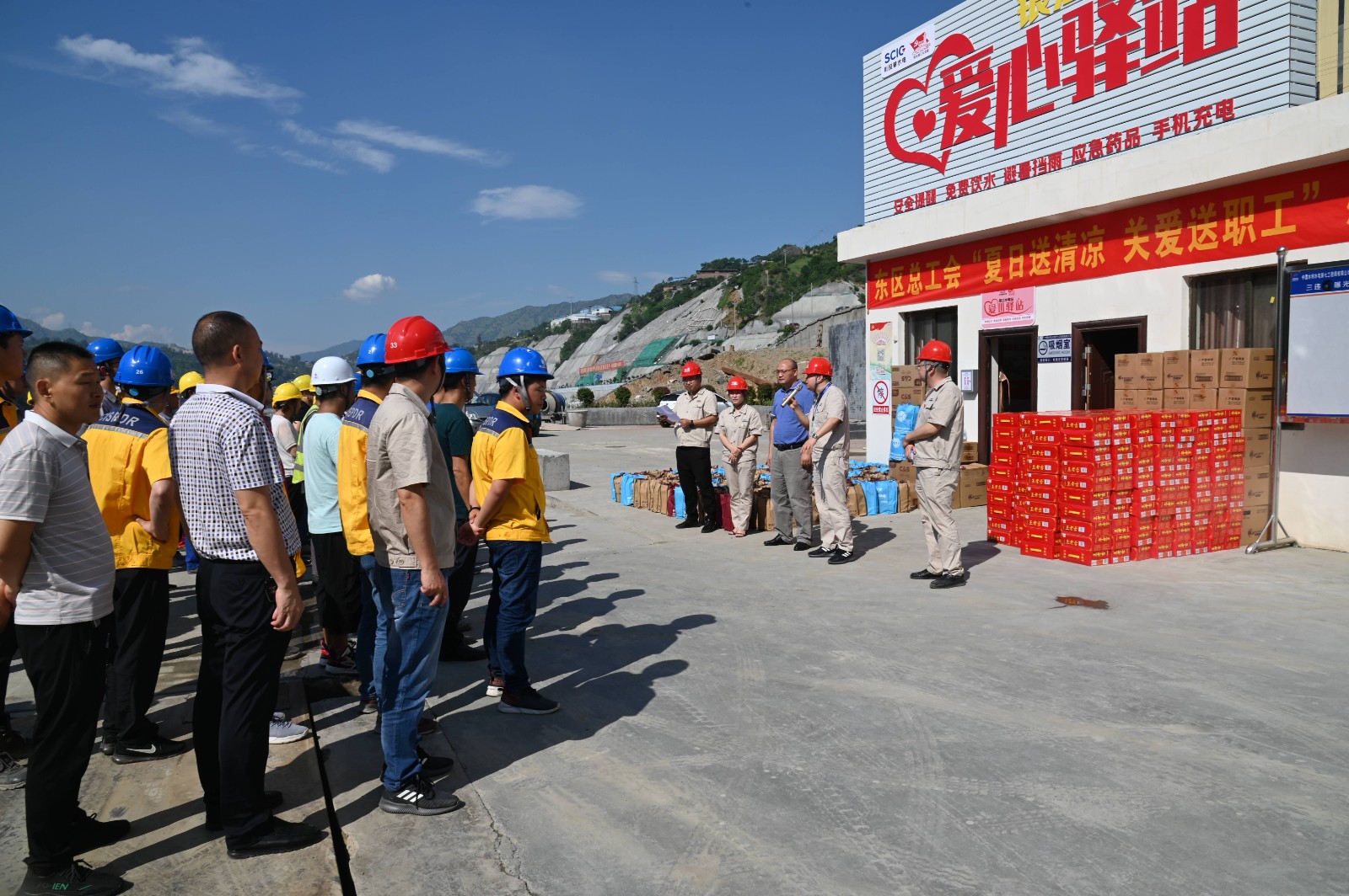 7月以來,攀枝花氣溫持續(xù)升高,為了保證一線職工在高溫環(huán)境下安全、清涼工作,近日攀枝花市東區(qū)總工會黨組書記、常務副主席劉貴平一行來到川投能源銀江水電站施工現(xiàn)場愛心驛站,為一線建設者們送來了300余份清涼解暑飲品和防暑降溫用品,慰問奮戰(zhàn)在高溫一線的作業(yè)人員和管理人員。