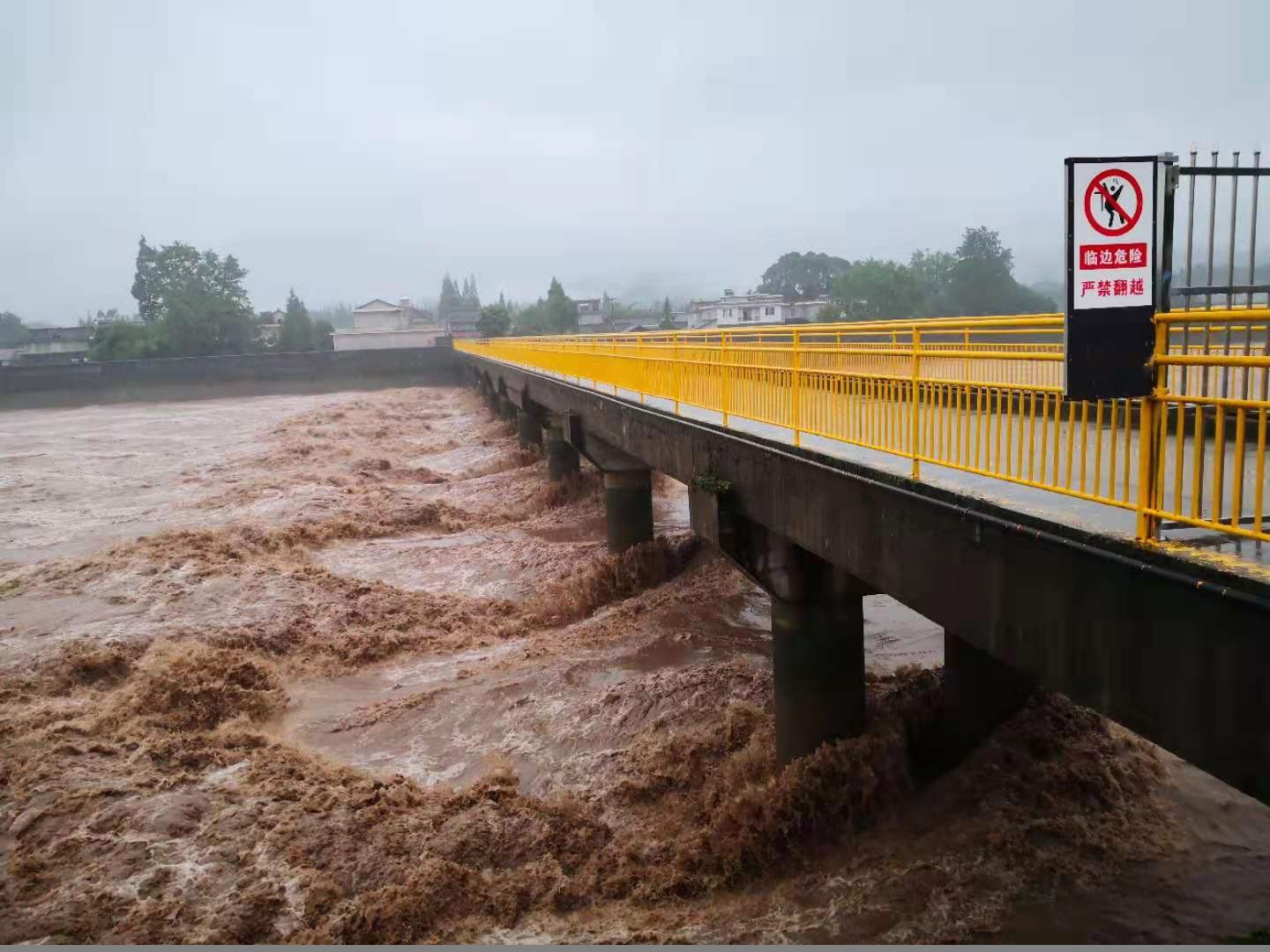 8月18日凌晨,青衣江上游至百花灘電廠強降雨一直持續(xù),電廠組織各部門及時會商研判,第一時間提前騰庫,6:31,電廠停機避峰,組織人員開展巡視檢查,對重點部位、重點區(qū)域加強監(jiān)測,在預(yù)判流量將達(dá)到8000m2/s前拆除了尾水渠2號橋橋梁兩側(cè)的防護(hù)欄桿,并安排人員在尾水渠2號橋兩側(cè)拉設(shè)了警戒線,禁止人員從2號橋通過。9:55最大洪峰流量(9880 m3/s)安全通過百花灘電廠。
