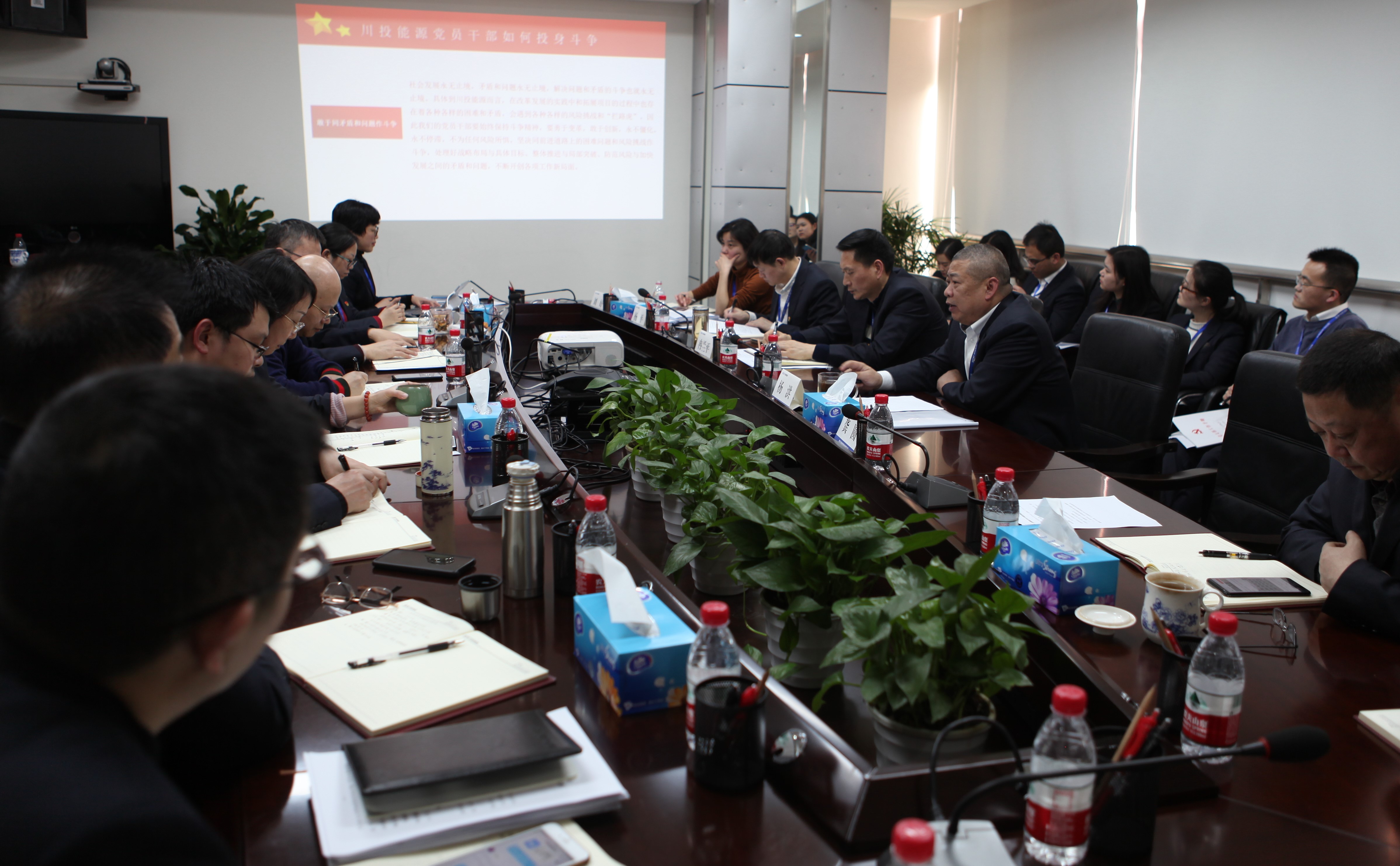 公司本部及川投電力公司全體黨員、中層及以上管理人員,天彭電力和交大光芒黨建、紀(jì)檢負(fù)責(zé)人參加黨課學(xué)習(xí)。
