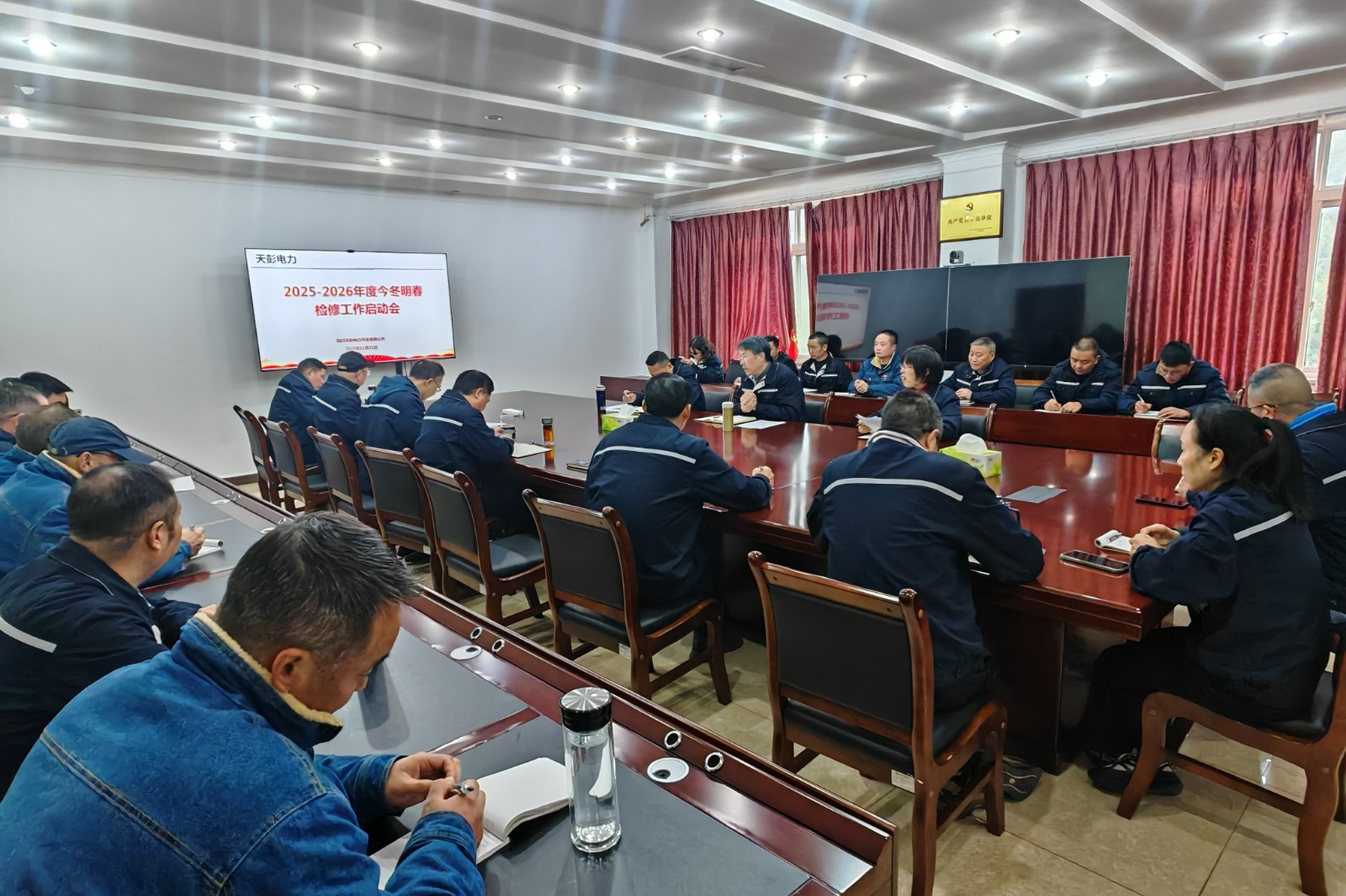 11月21日,天彭電力召開2025-2026年度今冬明春檢修工作啟動會,梳理總結(jié)上年檢修維護(hù)工作,安排部署今冬明春檢修重點工作,統(tǒng)一思想,凝聚干勁,形成同頻共振、同向發(fā)力的檢修工作局面。公司領(lǐng)導(dǎo)、中層干部、安全專責(zé)、車間設(shè)備管理員及全體檢修維護(hù)人員參加會議,會議由公司黨總支書記、董事、總經(jīng)理劉紅兵主持。
