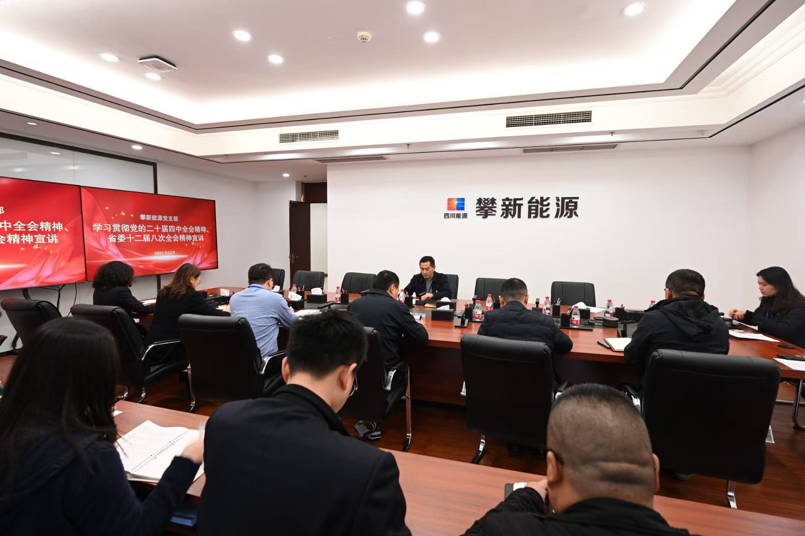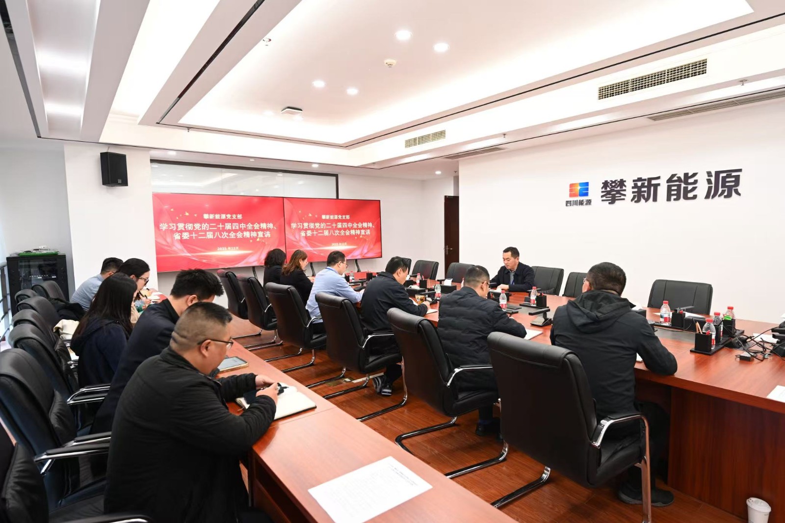 12月22日,攀新能源黨支部組織召開全體黨員大會,黨支部書記、董事長王行仁講授專題黨課,集中宣講黨的二十屆四中全會和省委十二屆八次全會精神,公司領(lǐng)導(dǎo)班子成員及全體黨員、預(yù)備黨員、入黨積極分子參加學(xué)習(xí)。